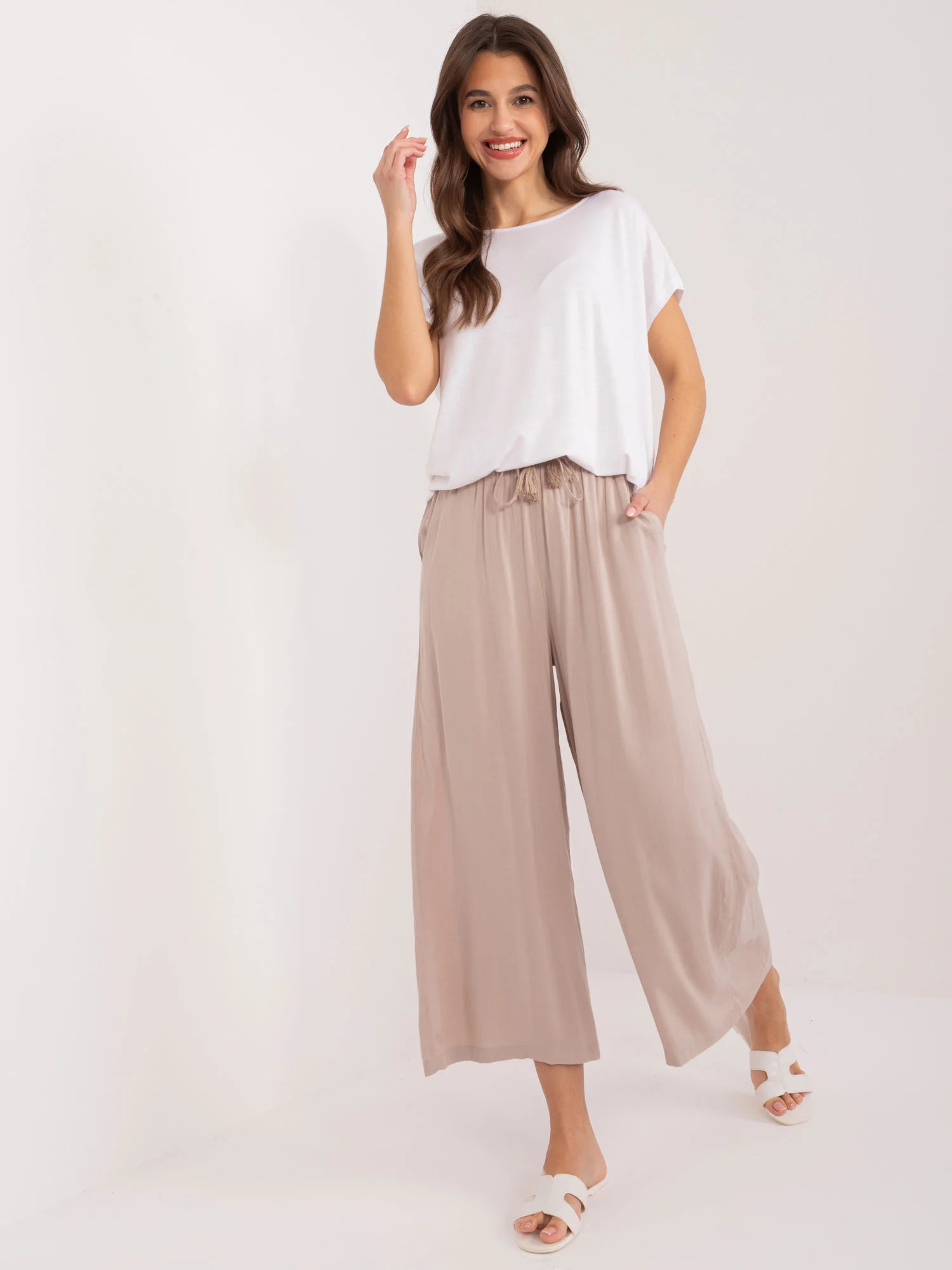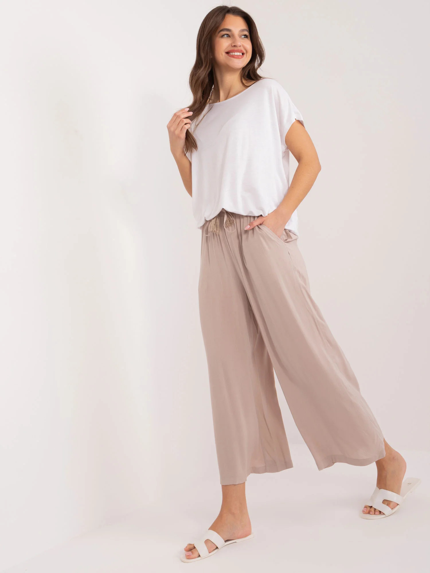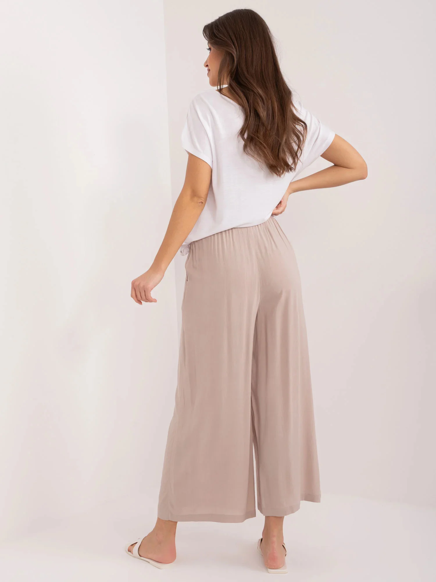 Rozměry kalhot ve velikosti 36 měřené na plocho: šířka v pase - 35 cm, výška v pase - 28 cm, celková délka - 107 cm.