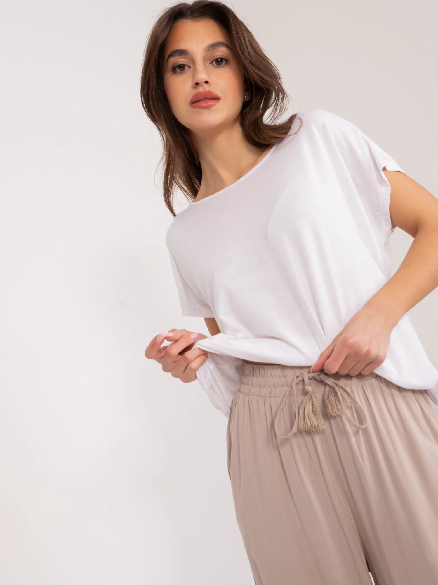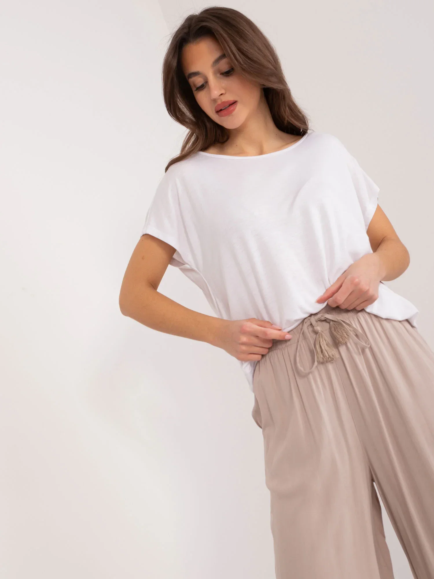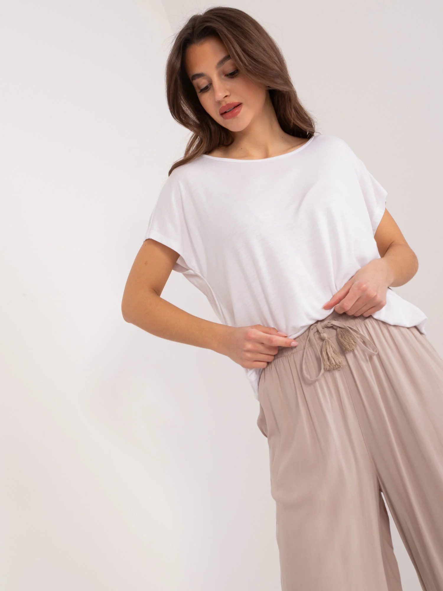 Modelka má na sobě velikost 36. Rozměry modelky: výška 176 cm, prsa 85 cm, pas 64 cm, boky 92 cm.