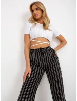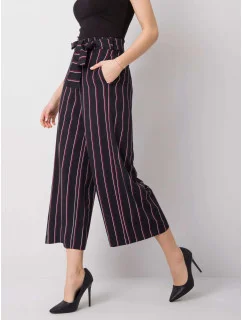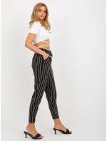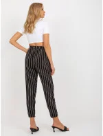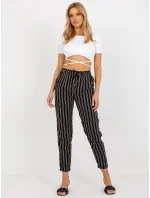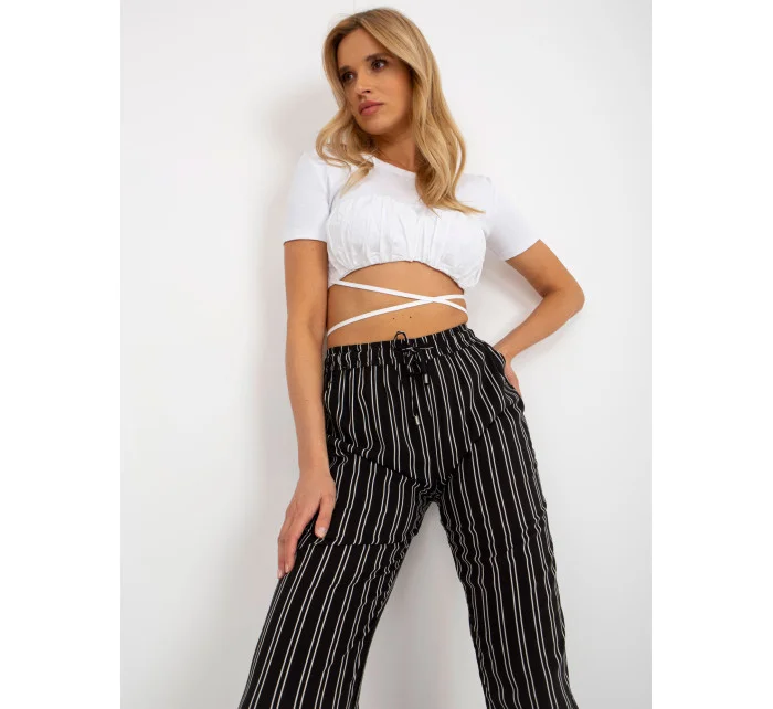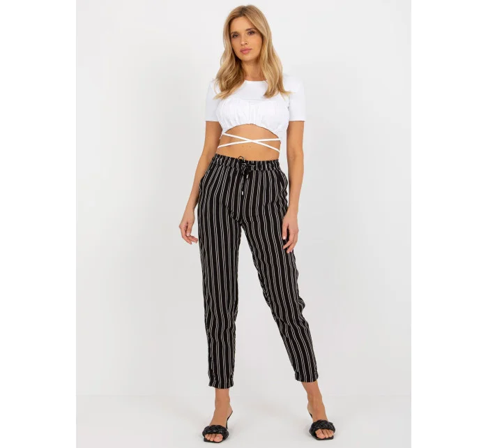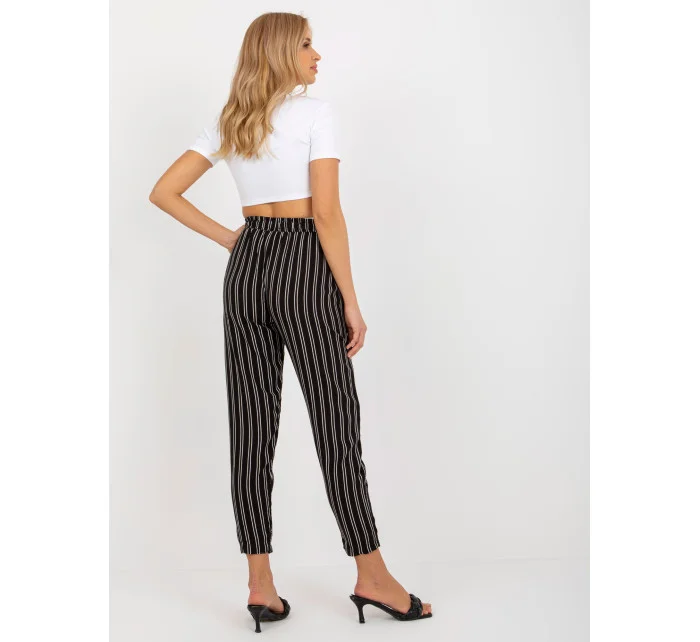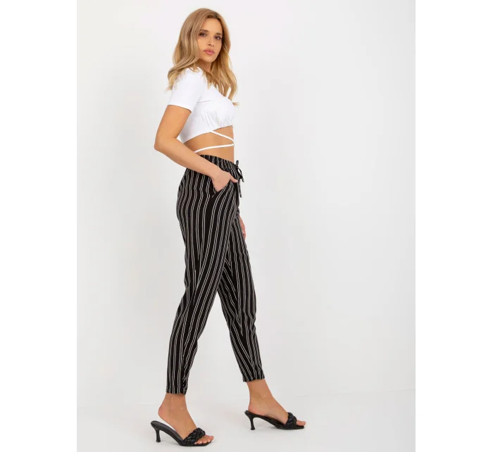 Černé letní pruhované látkové kalhoty PODLE ÚROVNĚ .