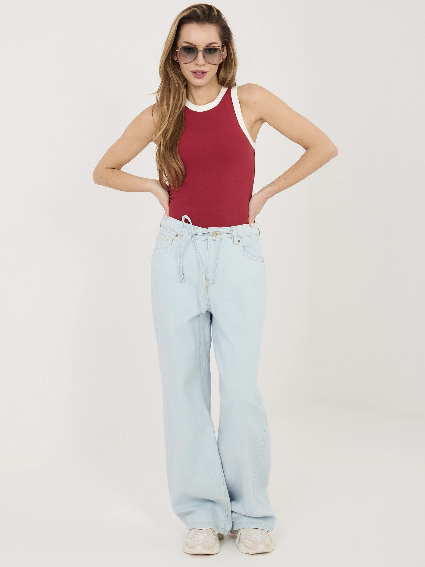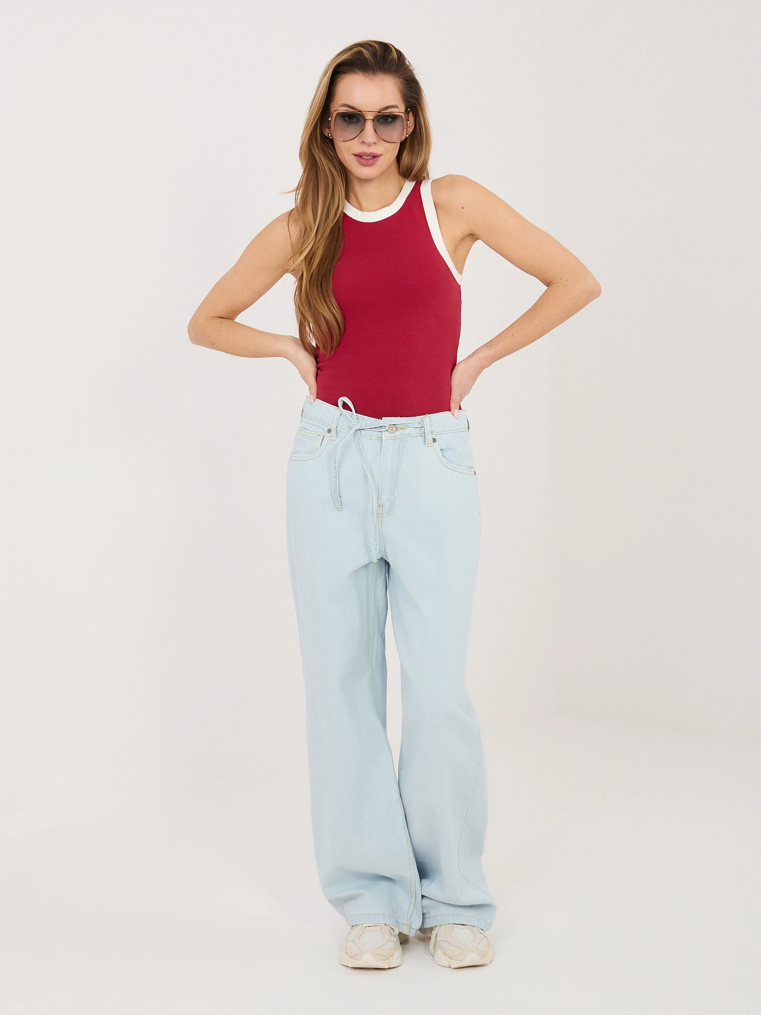 Modelka má na sobě jednu velikost. Míry modelky: výška 169 cm, poprsí 88 cm, pas 68 cm, boky 89 cm .