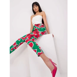 Zelené a růžové kalhoty s elegantním potiskem .