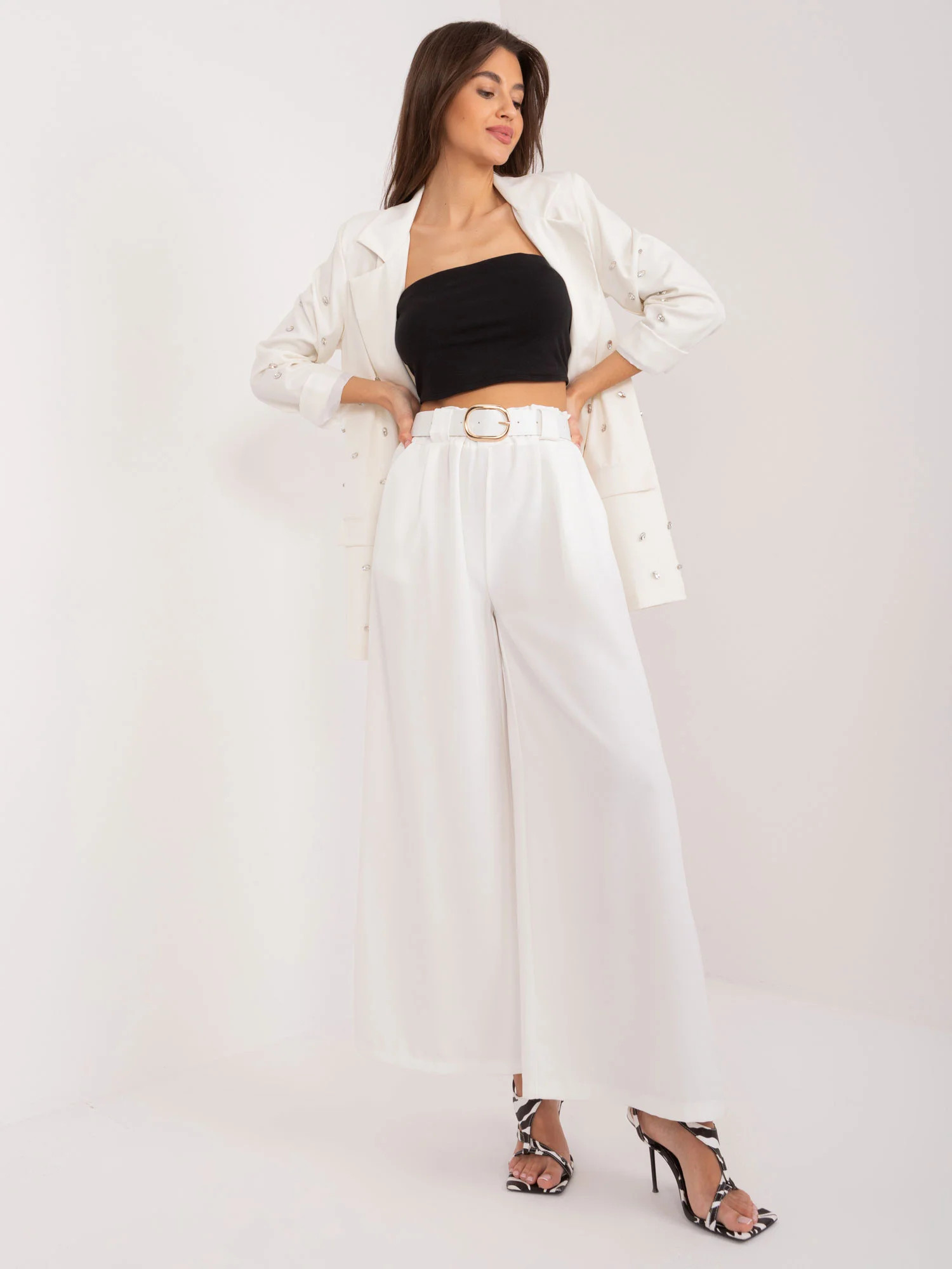 Modelka má na sobě jednu velikost. Rozměry modelky: výška 172 cm, poprsí 88 cm, pas 63 cm, boky 92 cm.