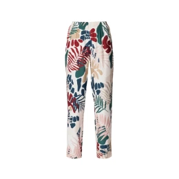 Wprowadź do swojej garderoby odrobinę egzotyki dzięki długim spodniom Margot w tropikalny wzór! Wykonane w 100% z oddychającej, miękkiej wiskozy, zapewniają komfort przez cały dzień – idealne zarówno do relaksu w domu, jak i na letni spacer. Luźny krój, elastyczny pas oraz praktyczne kieszenie sprawiają, że to must-have tego sezonu. Kolorowy nadruk roślinny nadaje spodniom modnego, wakacyjnego charakteru. Styl i wygoda w jednym!
