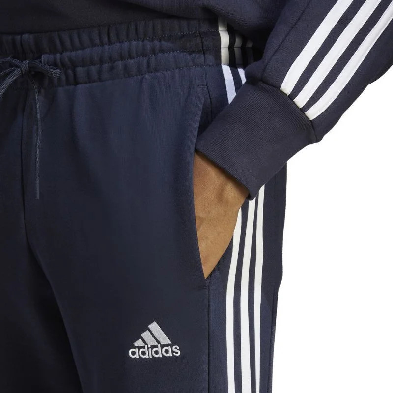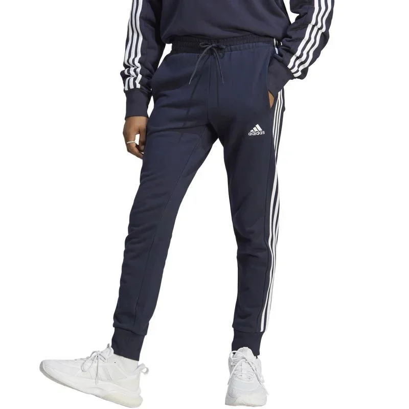 Pánské kalhoty adidas Essentials French Terry Tapered Cuff 3-Stripes navy blue IC9406