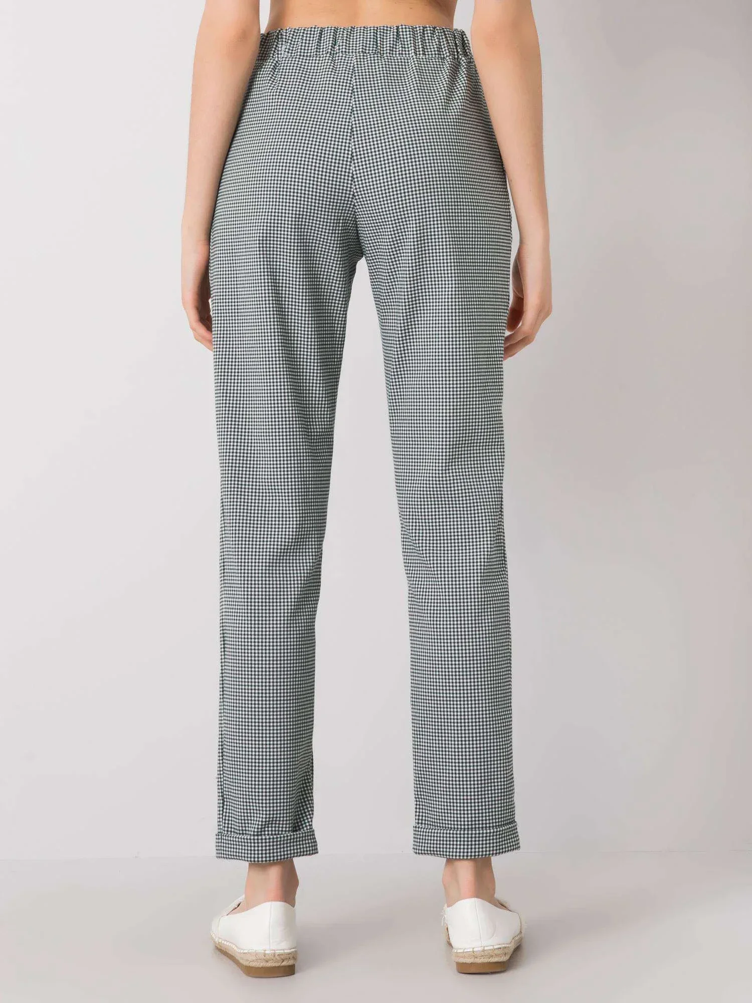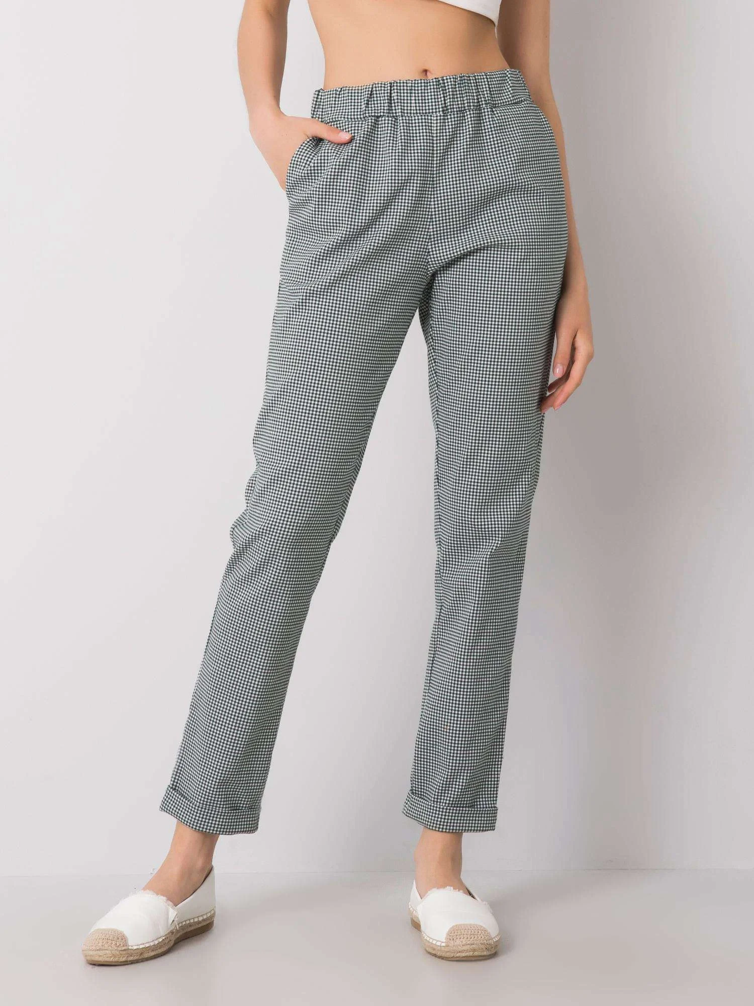 Dámské černozelené kostkované kalhoty.