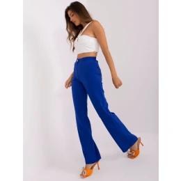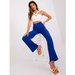 Kalhoty z kobaltové látky se širokými nohavicemi .