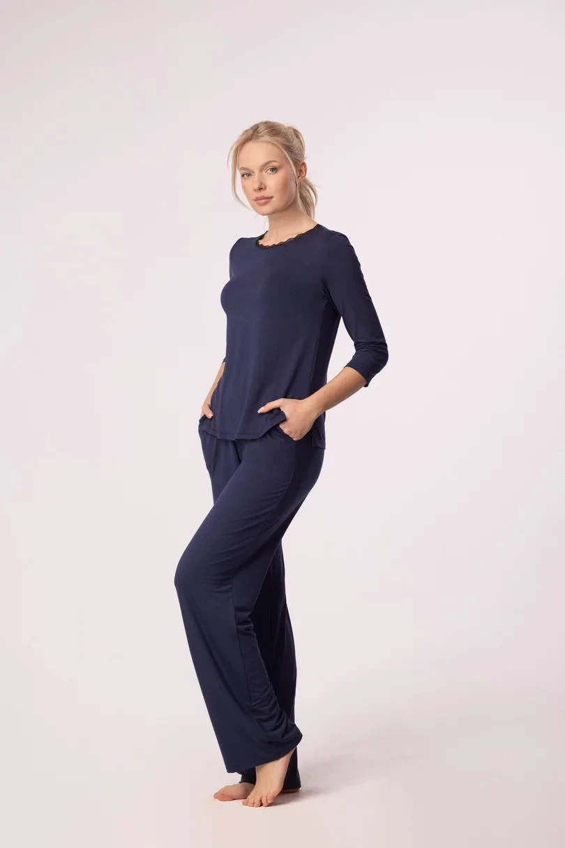 Dlouhé pyžamové kalhoty s kapsami .