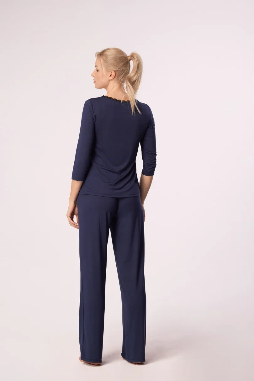 Viskózové dlouhé pyžamové kalhoty s kapsami .