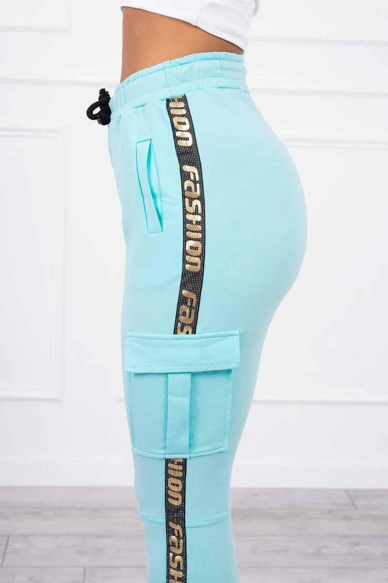 Představujeme vám pohodlné kalhoty. Bojové kalhoty. Na bocích nohavic našité lemování s nápisem Fashion. Kalhoty jsou vyrobeny z vysoce kvalitního materiálu. Velikost je univerzální a vyhovuje dámám ve velikostech XS, S a M.