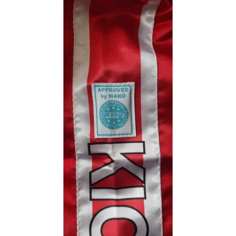 - Na jedné nohavici mají potisk s polskou vlajkou a na druhé logo WAKO - jsou certifikovány pro soutěže v kickboxu.
