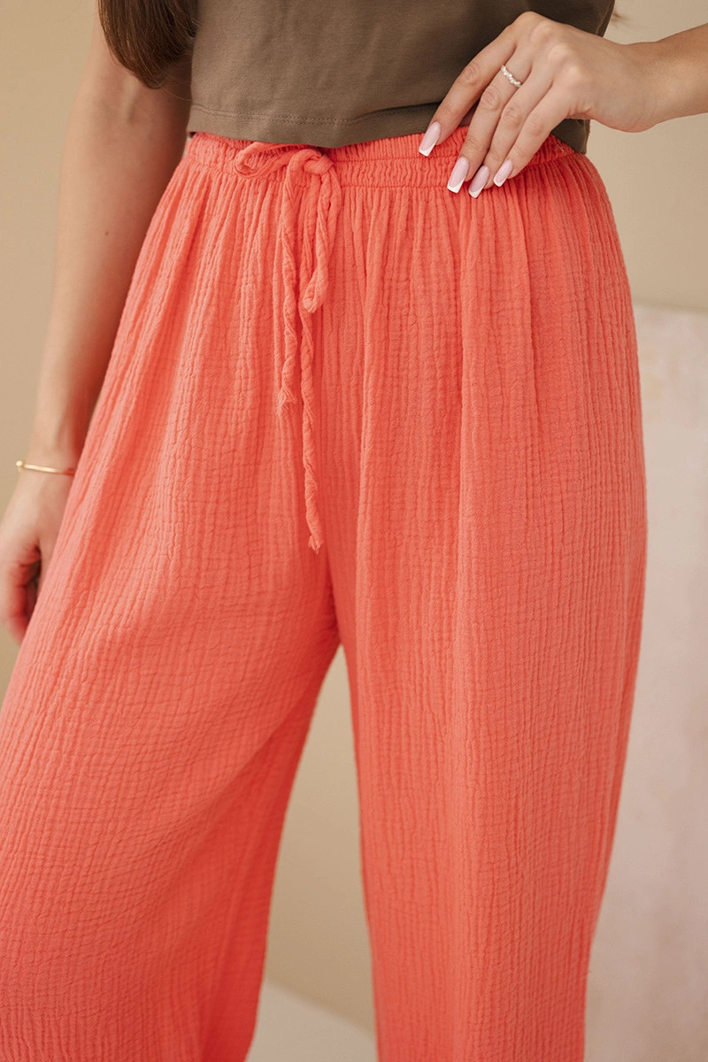 Kalhoty mušelínové s širokým nohavicí malinové