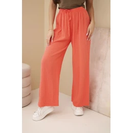 Kalhoty mušelínové s širokým nohavicí malinové