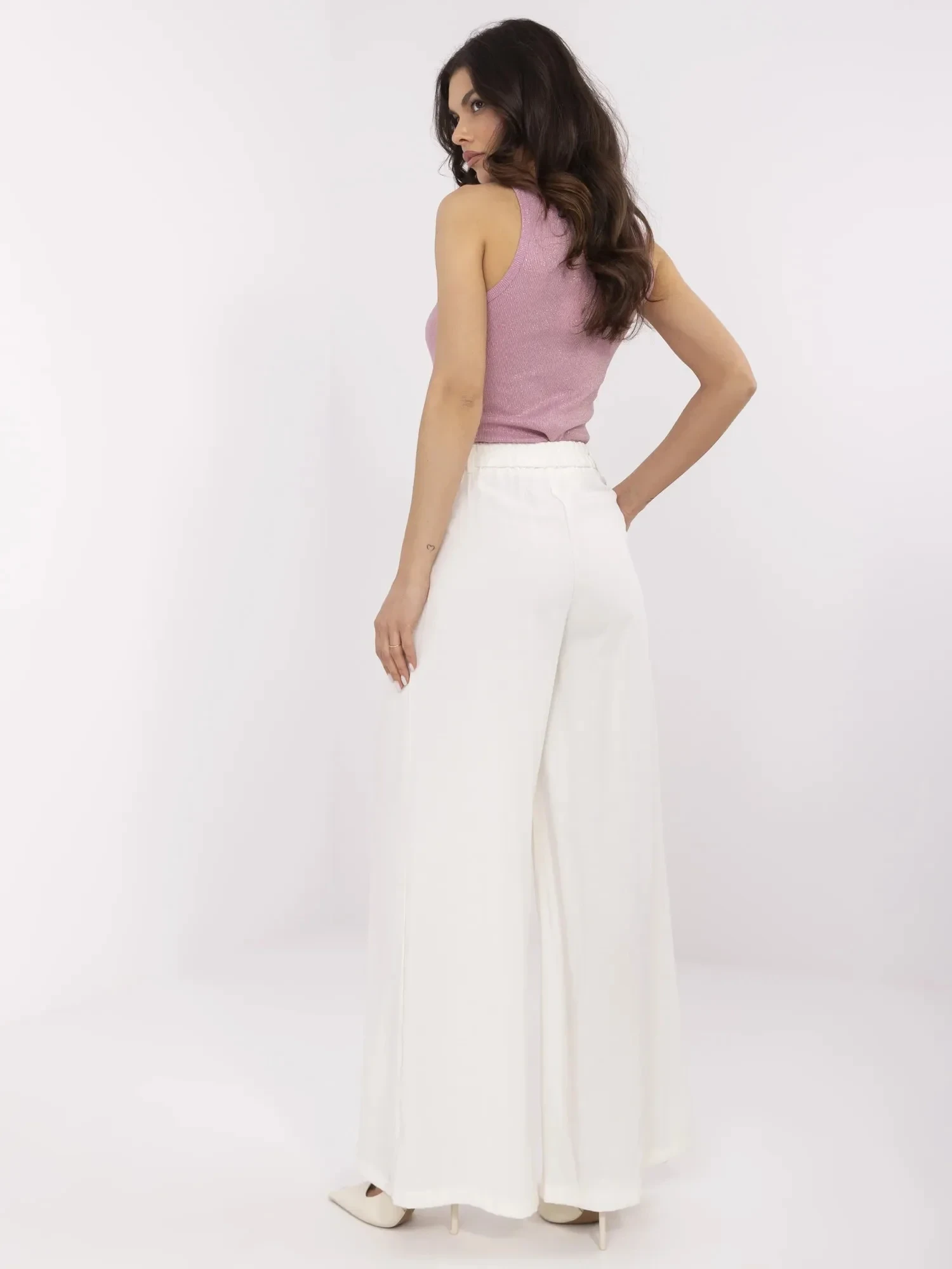 Rozměry kalhot ve velikosti S/M. měřeno na plocho: šířka v pase - 33 cm (na plocho), šířka v pase - 41 cm (při natažení), výška v pase - 33 cm, šířka v bocích - 50 cm, celková délka - 108 cm.