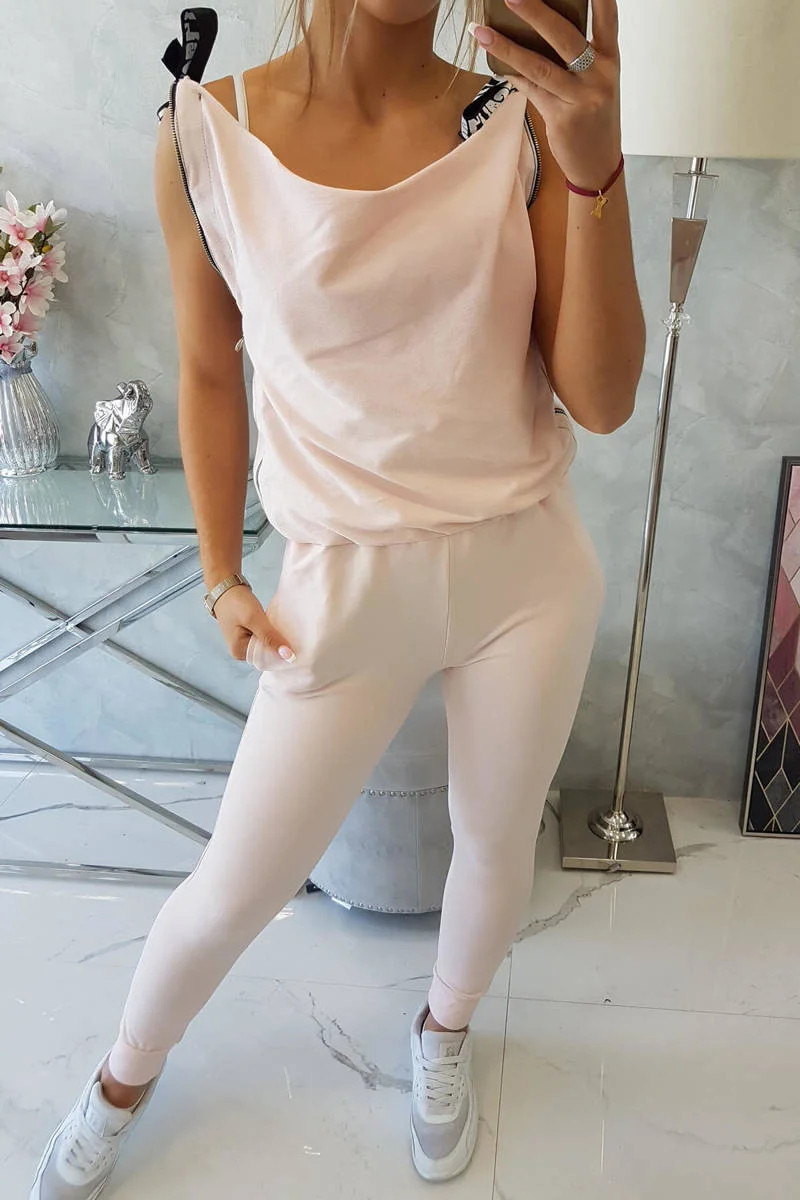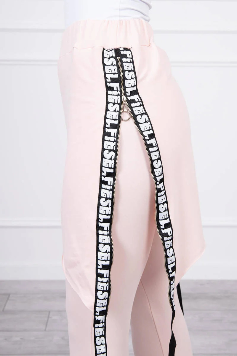 Kalhoty/oblek s nápisem selfie powder pink