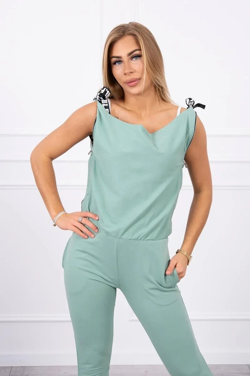 Kalhoty/oblek s nápisem selfie tmavě mátový