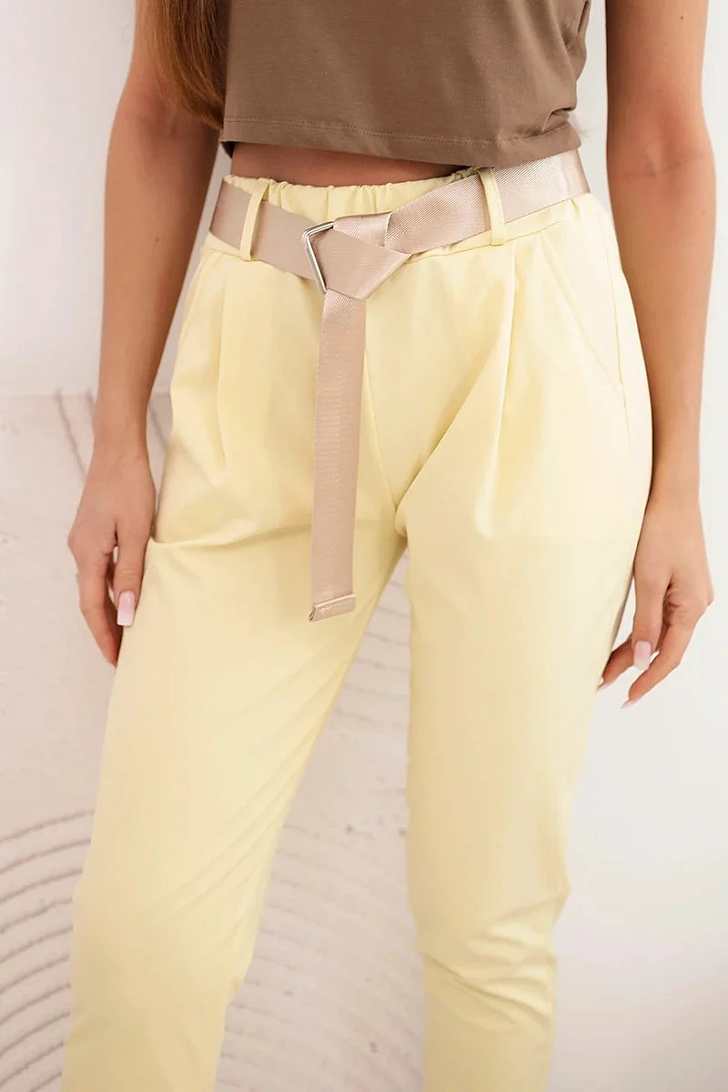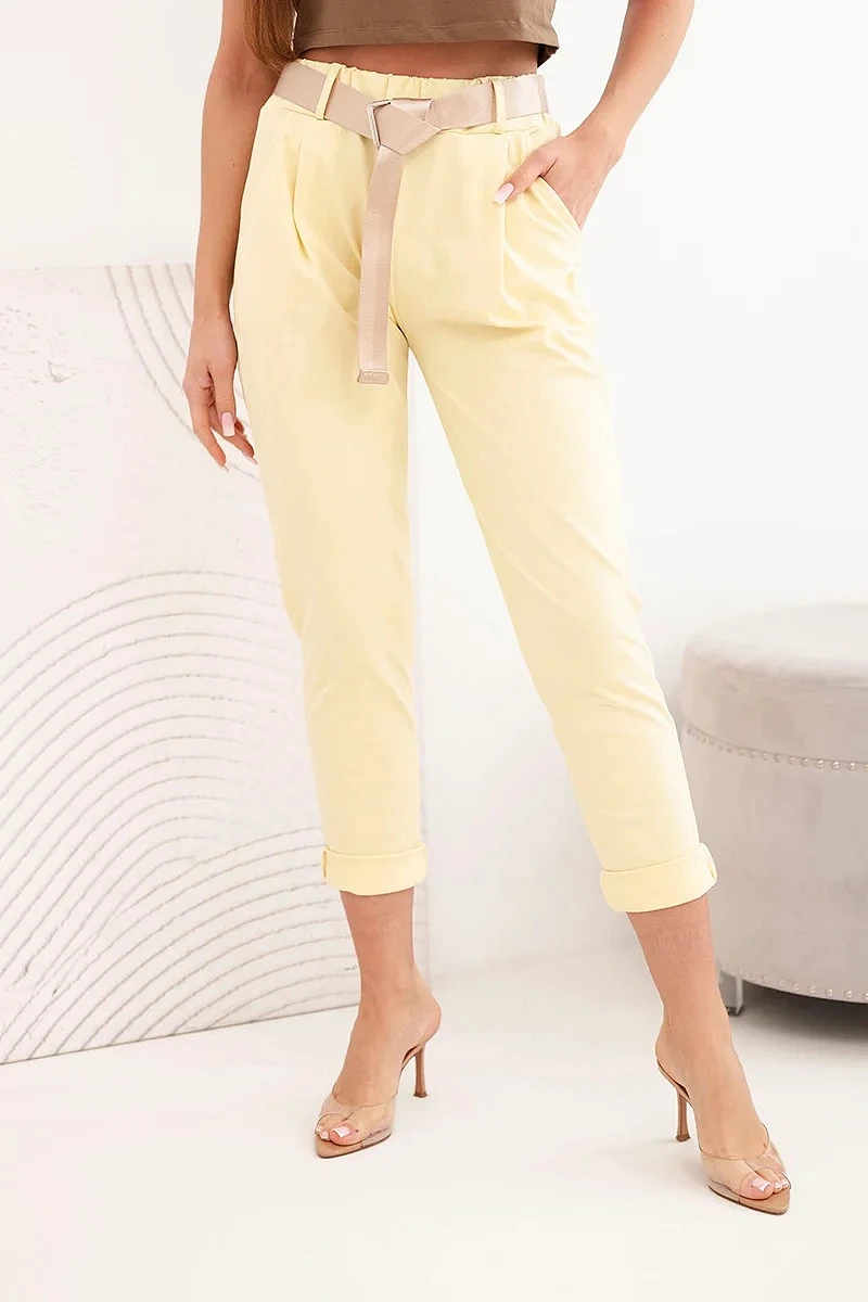 Kalhoty Punto s páskem jsou stylovou a pohodlnou volbou, která spojuje eleganci s funkčností. Vyrobeny z vysoce kvalitního materiálu, zajišťují pohodlí při nošení a dokonalé přizpůsobení. Pásek v pase zvýrazňuje postavu a dodává kalhotám sofistikovaný charakter. Jsou ideální jak pro každodenní nošení, tak pro formálnější příležitosti. Tyto kalhoty jsou univerzálním prvkem šatníku, který umožňuje vytvořit mnoho módních outfitů. Kalhoty s páskem jsou nezbytností pro každou ženu, která si cení elegance a pohodlí v jednom. Velikost je univerzální a bude vyhovovat ženám nosícím velikosti S, M nebo L.