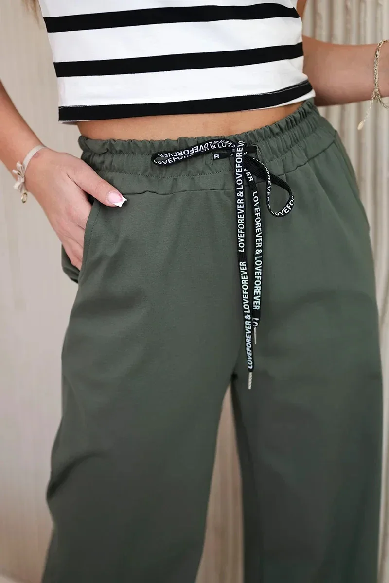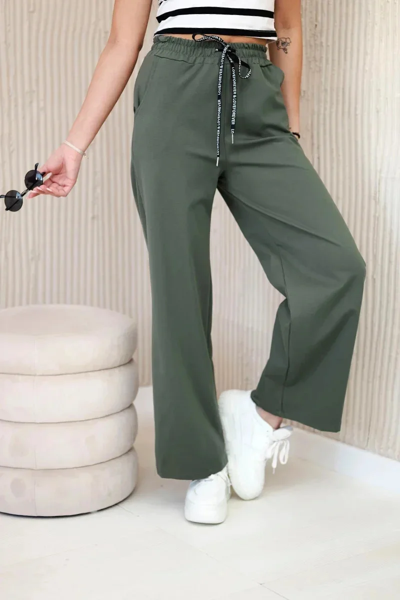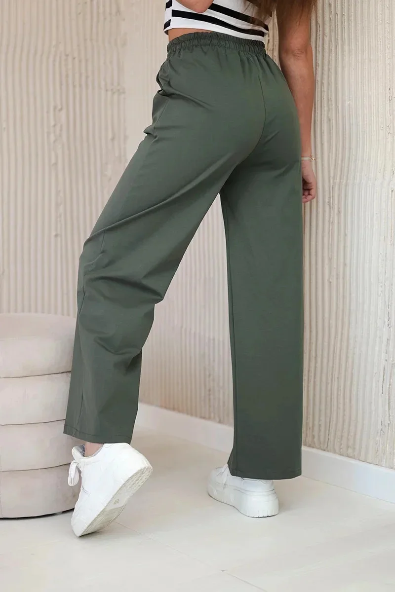 Kalhoty Punto s širokou nohavicí jsou stylovou a pohodlnou volbou, ideální na každodenní nošení i na zvláštní příležitosti. Vyrobené z vysoce kvalitních materiálů, tyto kalhoty zajišťují dokonalé padnutí a volnost pohybu. Široká nohavice jim dodává módní, moderní vzhled a opticky prodlužuje nohy. Díky své univerzálnosti se tyto kalhoty skvěle kombinují s různorodými stylizacemi – od casualových topů po elegantní košile. Jsou skvělou volbou pro ty, kteří ocení komfort a módní design. Velikost je univerzální a bude vyhovovat ženám nosícím velikosti S, M nebo L.
