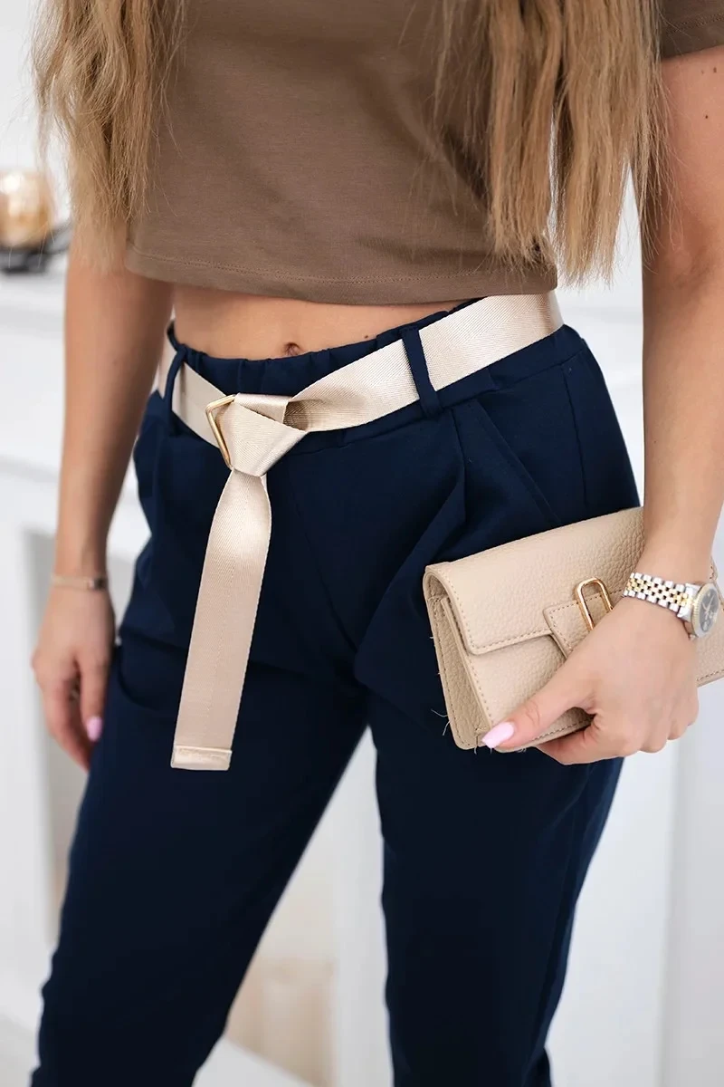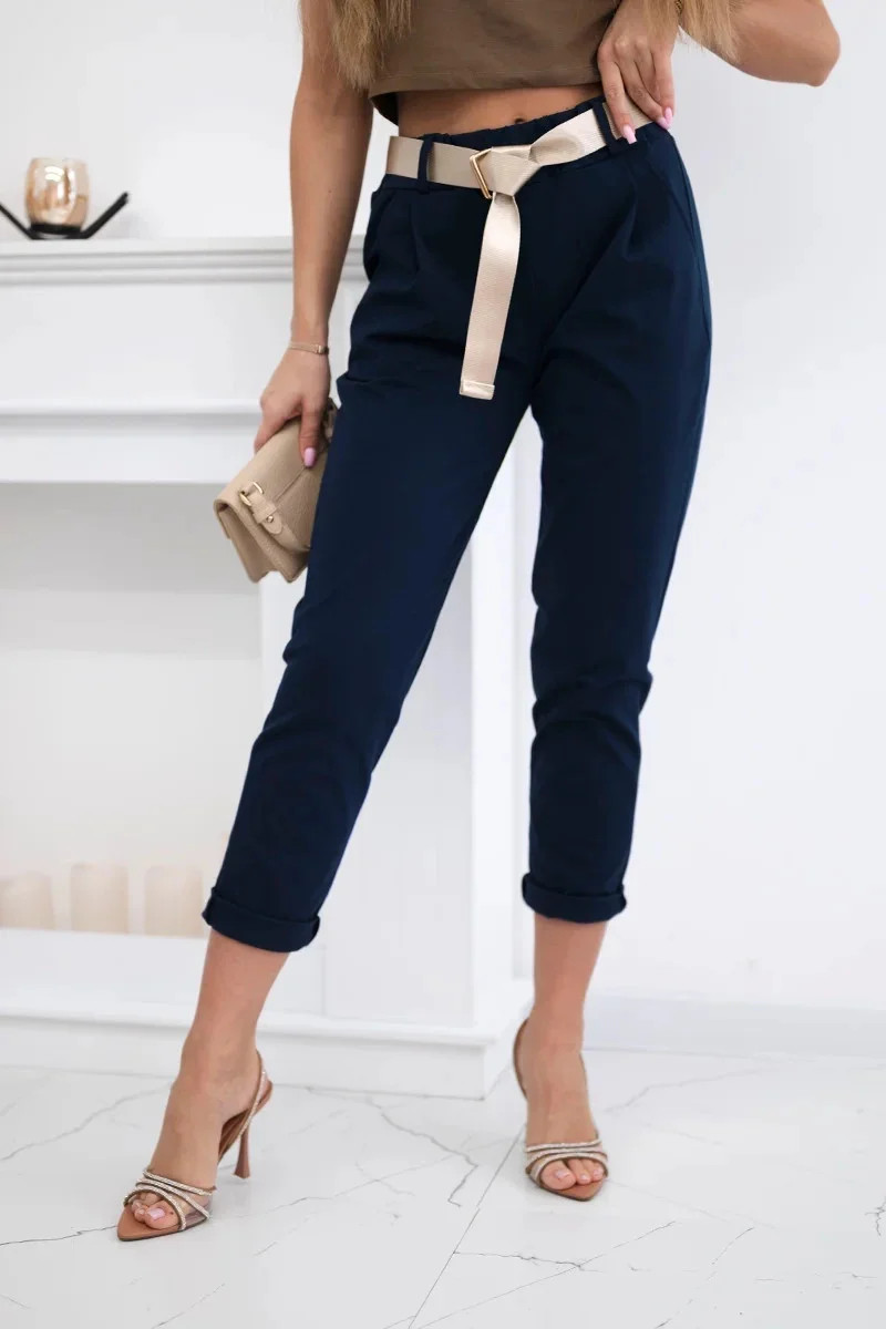 Kalhoty Punto s páskem jsou stylovou a pohodlnou volbou, která spojuje eleganci s funkčností. Vyrobeny z vysoce kvalitního materiálu, zajišťují pohodlí při nošení a dokonalé přizpůsobení. Pásek v pase zvýrazňuje postavu a dodává kalhotám sofistikovaný charakter. Jsou ideální jak pro každodenní nošení, tak pro formálnější příležitosti. Tyto kalhoty jsou univerzálním prvkem šatníku, který umožňuje vytvořit mnoho módních outfitů. Kalhoty s páskem jsou nezbytností pro každou ženu, která si cení elegance a pohodlí v jednom. Velikost je univerzální a bude vyhovovat ženám nosícím velikosti S, M nebo L.