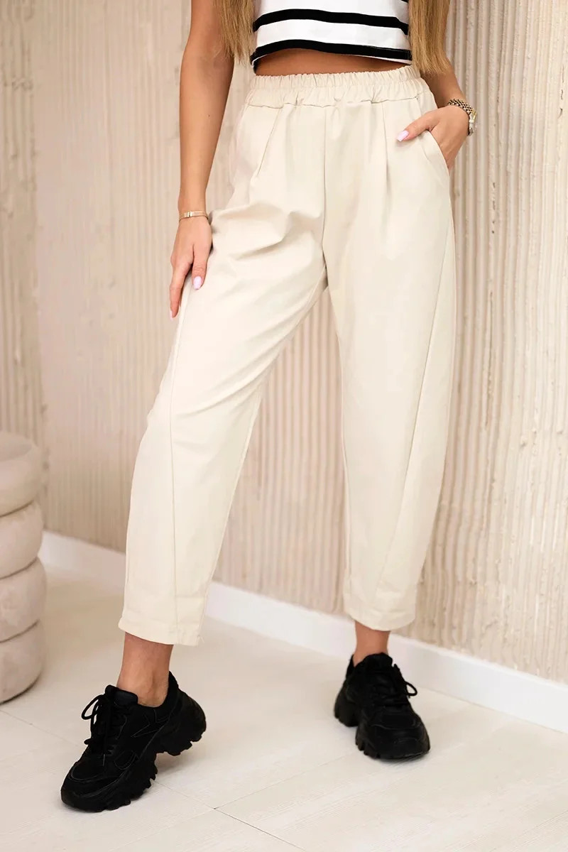 Letní kalhoty Punto jsou perfektní volbou pro ženy, které oceňují pohodlí a módní vzhled. Jsou vyrobeny z lehkého a vzdušného materiálu, jsou jako stvořené do teplých dnů. Jejich volný střih zajišťuje volnost pohybu a elastický pas s nastavitelným šněrováním zaručuje perfektní padnutí. Kalhoty mají praktické kapsy, které dodávají funkčnost a ležérní charakter. Jejich univerzální design je předurčuje jak pro každodenní styling, tak pro letní výlety. Summer Punto je kombinací pohodlí a elegance – můžete ho spárovat s oblíbenou halenkou, tričkem nebo topem a vytvořit tak lehký a stylový vzhled pro každou příležitost. Vyberte si letní kalhoty Punto a buďte módní po celou sezónu! Velikost je univerzální a sedne ženám ve velikostech S, M nebo L.