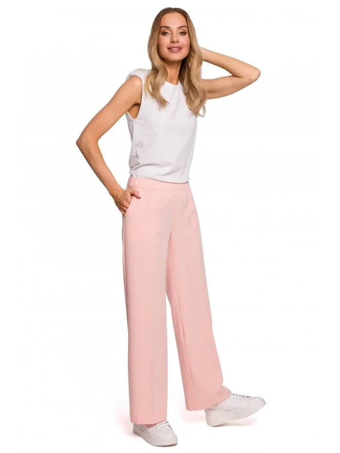 Kalhoty s rozšířenými nohavicemi model 18003322 pudrové - Moe