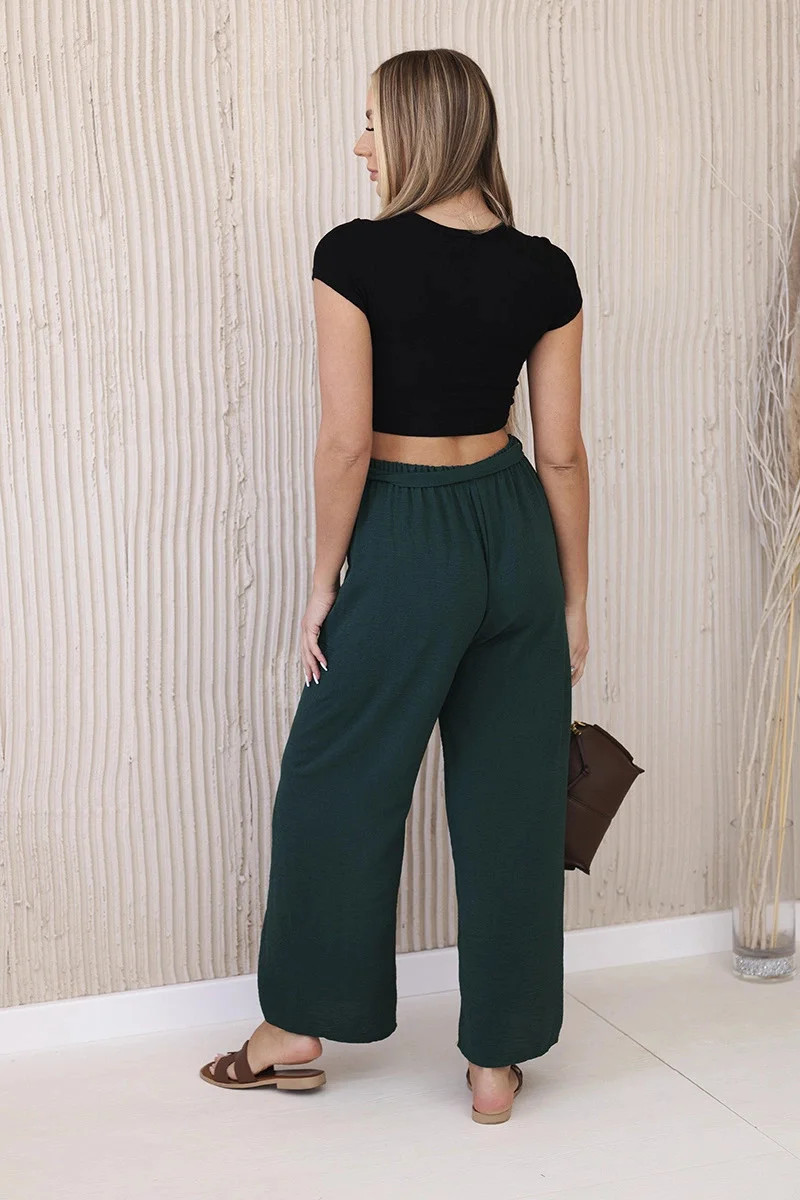 Kalhoty s širokým pasem tmavě zelená