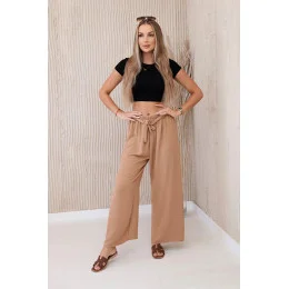 Široké kalhoty se zavazováním v pase jsou módní a pohodlnou volbou pro mnoho příležitostí. Široké nohavice dodávají celému stylingu volnost a lehkost, zatímco zavazování v pase umožňuje přizpůsobit kalhoty vašim individuálním preferencím. Jsou perfektní na letní procházky, neformální schůzky nebo večerní výlety, dodají vašemu stylu módní akcent a pohodlně se nosí. Tyto kalhoty se rychle stanou nenahraditelným prvkem vašeho šatníku, spojí funkčnost a styl. Velikost je univerzální a bude vhodná pro ženy, které nosí velikost S, M nebo L.