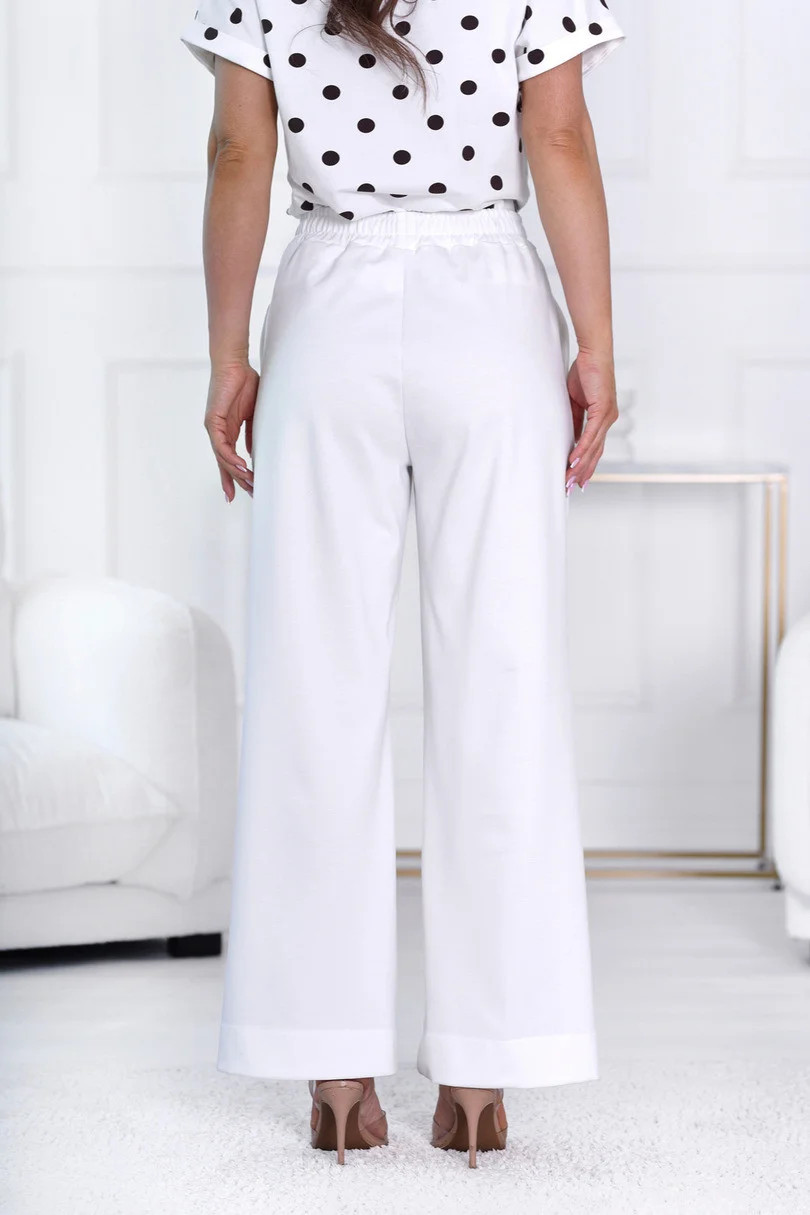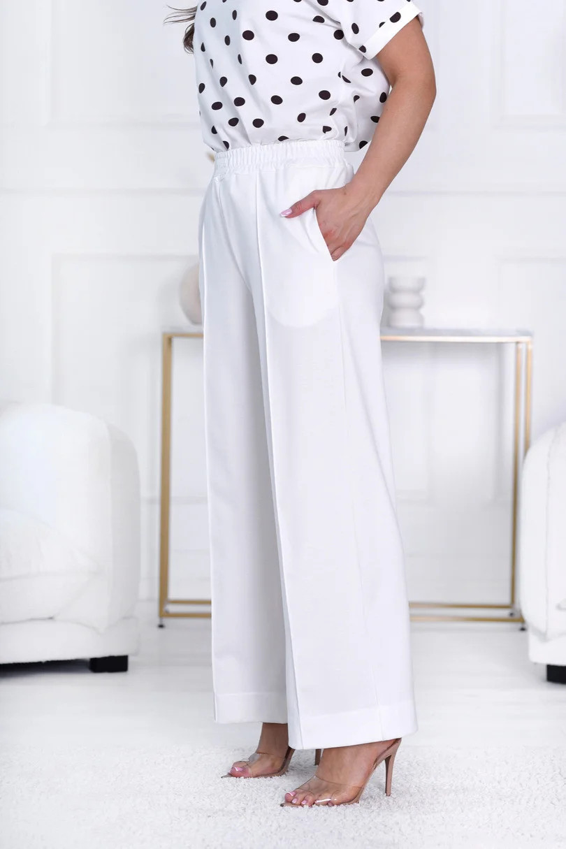 Zažijte výjimečné pohodlí a styl s našimi kalhotami Sambra! Díky rovnému střihu a širokým nohavicím jsou tyto kalhoty ideální volbou pro širokou škálu příležitostí. Jsou vyrobeny z měkké a pohodlné tkaniny s příměsí rayonu a poskytují příjemný pocit na kůži. Elastický pas s všitou gumičkou zaručuje dokonalé přizpůsobení různým tvarům postavy, zatímco dvě praktické boční kapsy dodávají funkčnost. Výrazný prošívaný okraj podtrhuje elegantní styl, díky čemuž se kalhoty hodí jak k ležérnímu, tak elegantnějšímu oblečení.