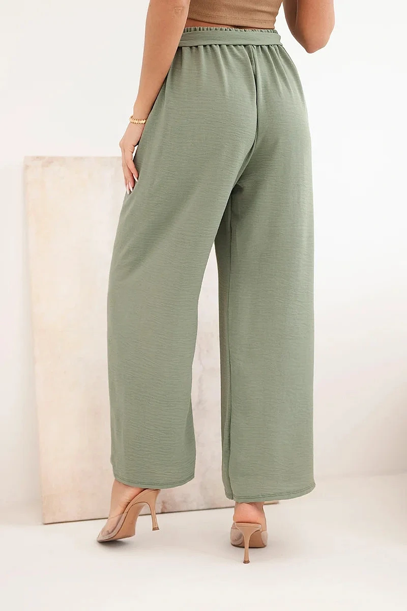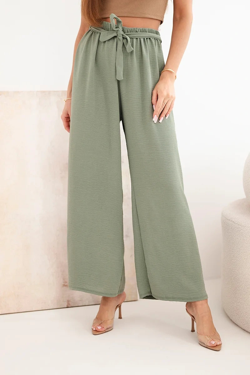 Kalhoty se širokým pasem a vázáním v pase světle khaki