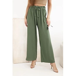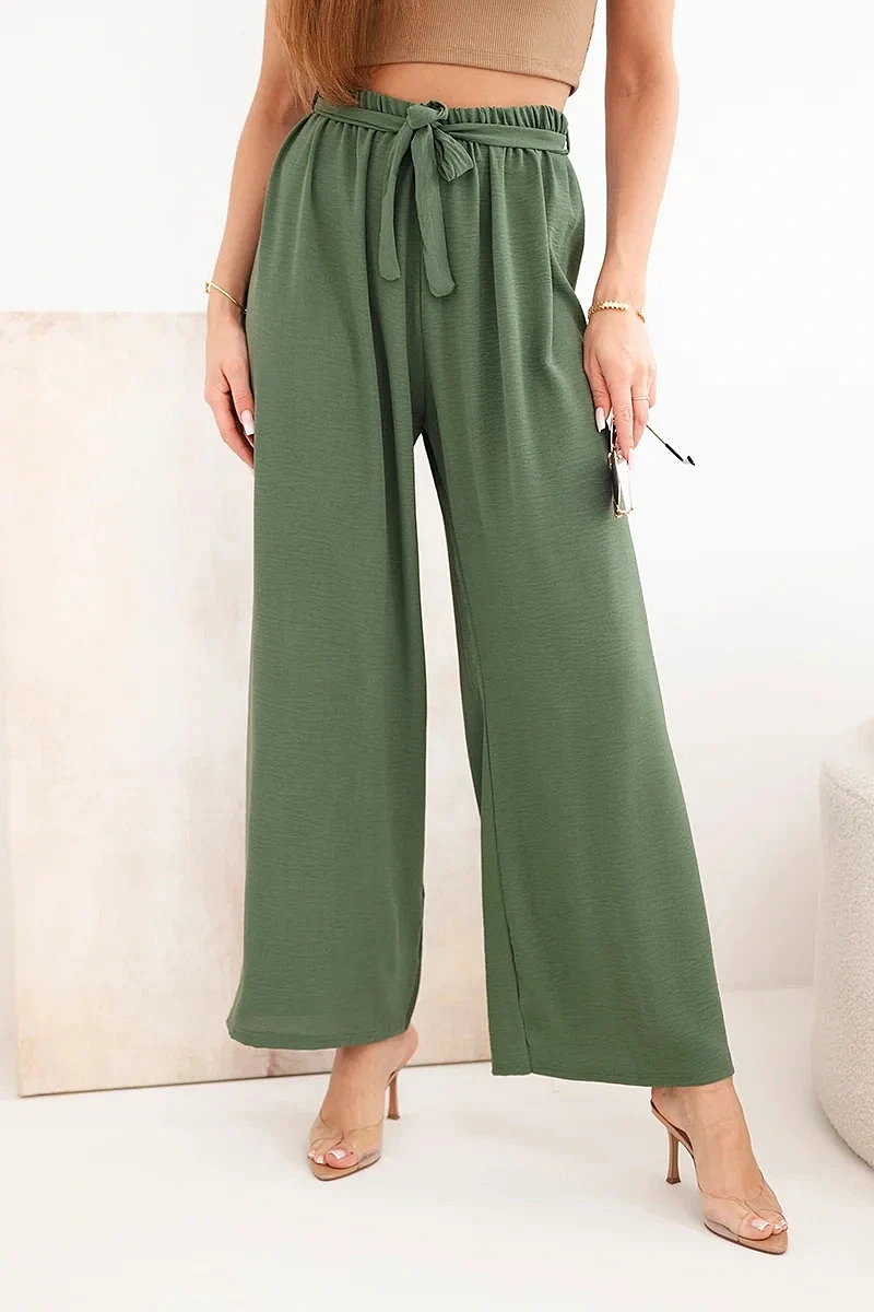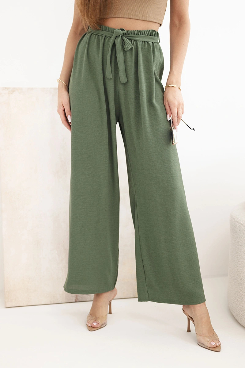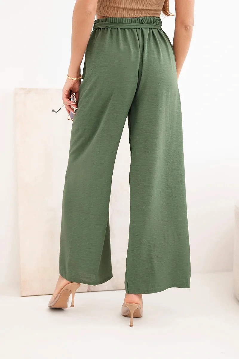 Kalhoty se širokým pasem a zavazováním v pase khaki