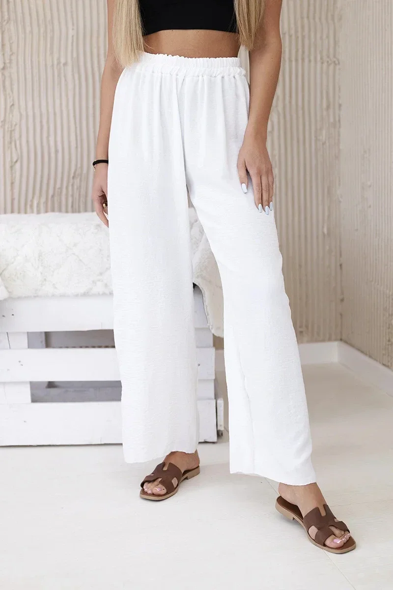 Široké viskózové kalhoty jsou jedinečným kouskem oblečení, který kombinuje pohodlí a eleganci. Tyto kalhoty, vyrobené z lehkého a vzdušného viskózového materiálu, zaručují nejen svobodu pohybu, ale také se budete cítit lehce a svěže po celý den. Široká nohavice dodává kalhotám charakteristický, volný střih, který je módní i pohodlný. Díky tomuto prvku vypadají kalhoty mimořádně stylově a působivě a dodává originalitu každému stylu. Univerzální design širokých kalhot je předurčuje pro různé příležitosti a styly. Můžete je nosit jak ke každodennímu ležérnímu outfitu, tak k elegantnějším soupravám na pracovní schůzky nebo večerní výlety. Široké viskózové kalhoty jsou perfektní volbou pro ženy, které oceňují pohodlí a styl. Díky univerzálnímu designu a kvalitnímu zpracování jsou tyto kalhoty nenahraditelným kouskem šatníku, který skvěle doplní každou kolekci oblečení. Velikost je univerzální a bude vhodná pro ženy, které nosí velikost S, M nebo L.