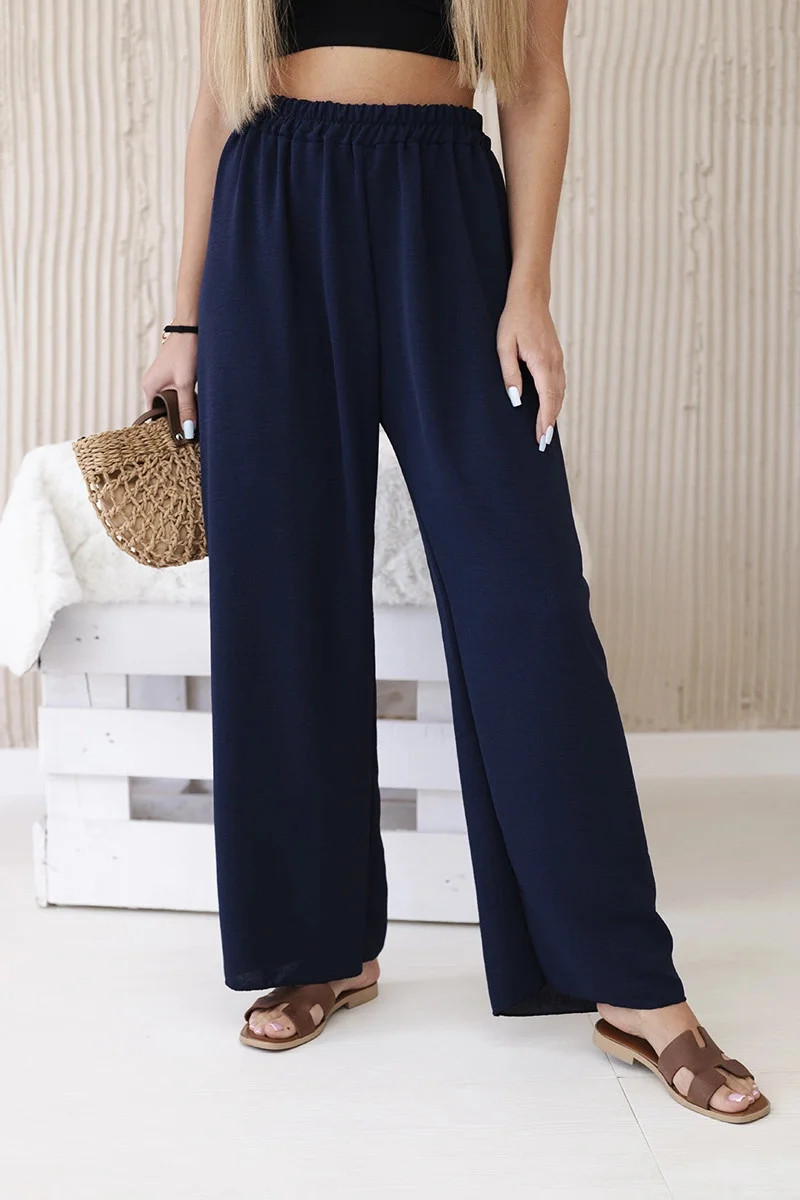 Široké viskózové kalhoty jsou jedinečným kouskem oblečení, který kombinuje pohodlí a eleganci. Tyto kalhoty, vyrobené z lehkého a vzdušného viskózového materiálu, zaručují nejen svobodu pohybu, ale také se budete cítit lehce a svěže po celý den. Široká nohavice dodává kalhotám charakteristický, volný střih, který je módní i pohodlný. Díky tomuto prvku vypadají kalhoty mimořádně stylově a působivě a dodává originalitu každému stylu. Univerzální design širokých kalhot je předurčuje pro různé příležitosti a styly. Můžete je nosit jak ke každodennímu ležérnímu outfitu, tak k elegantnějším soupravám na pracovní schůzky nebo večerní výlety. Široké viskózové kalhoty jsou perfektní volbou pro ženy, které oceňují pohodlí a styl. Díky univerzálnímu designu a kvalitnímu zpracování jsou tyto kalhoty nenahraditelným kouskem šatníku, který skvěle doplní každou kolekci oblečení. Velikost je univerzální a bude vhodná pro ženy, které nosí velikost S, M nebo L.