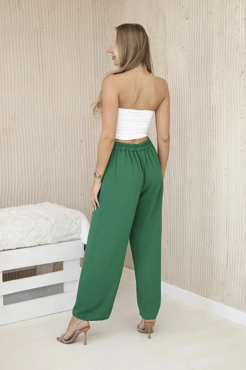 Kalhoty se širokými nohavicemi tmavě zelená