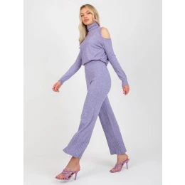 Fialové dámské úpletové kalhoty s vysokým pasem .