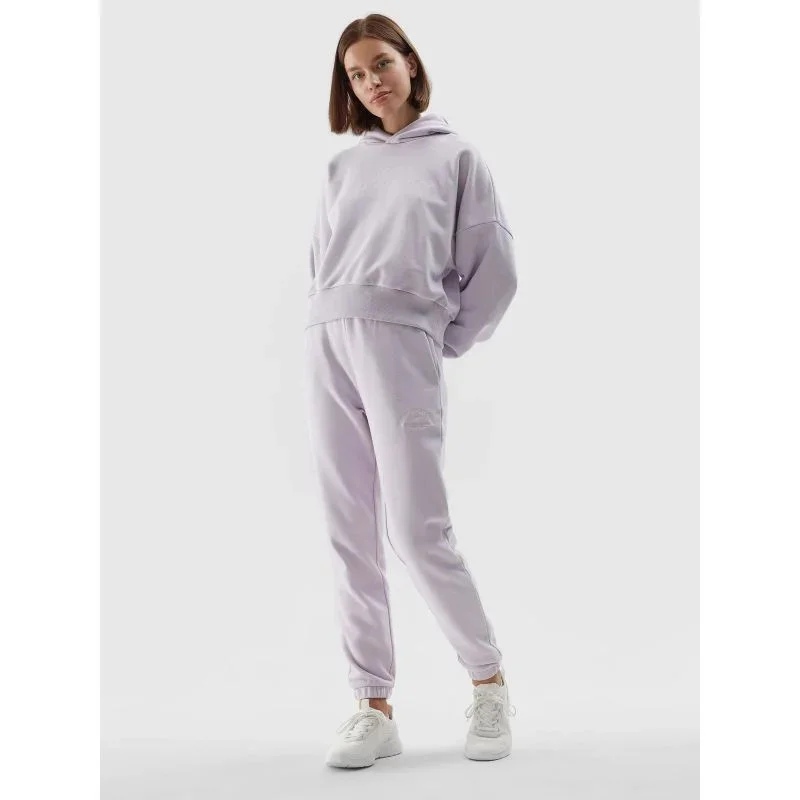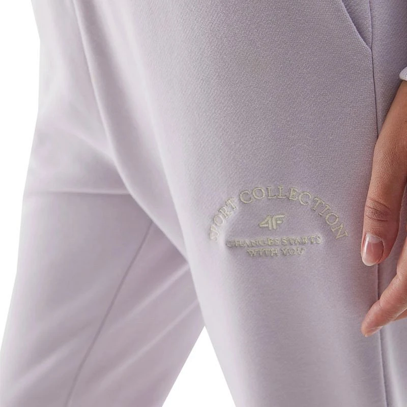 Dámské kalhoty 4F se hodí na každodenní nošení. Neizolované. Elastický pas bez možnosti nastavení. 2 otevřené kapsy na bocích. Širší rovné nohavice zakončené gumičkami. Na nohavici je vyšitý nápis "Sport Collection 4F Change Starts with You". Na dotek příjemný úplet s vysokým podílem bavlny. Použití recyklovaných vláken (hlavní materiál obsahuje 13 % recyklovaného polyesteru).