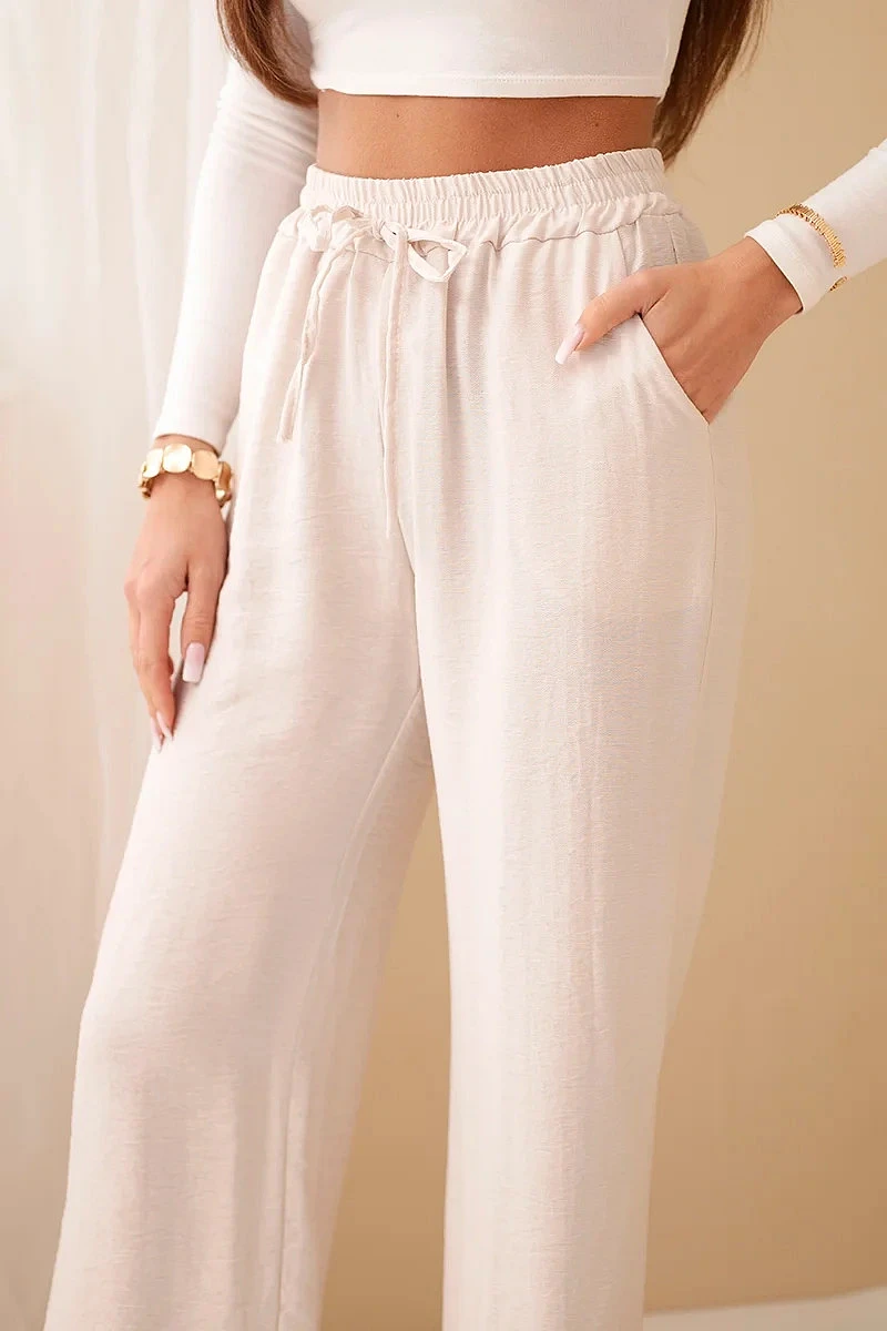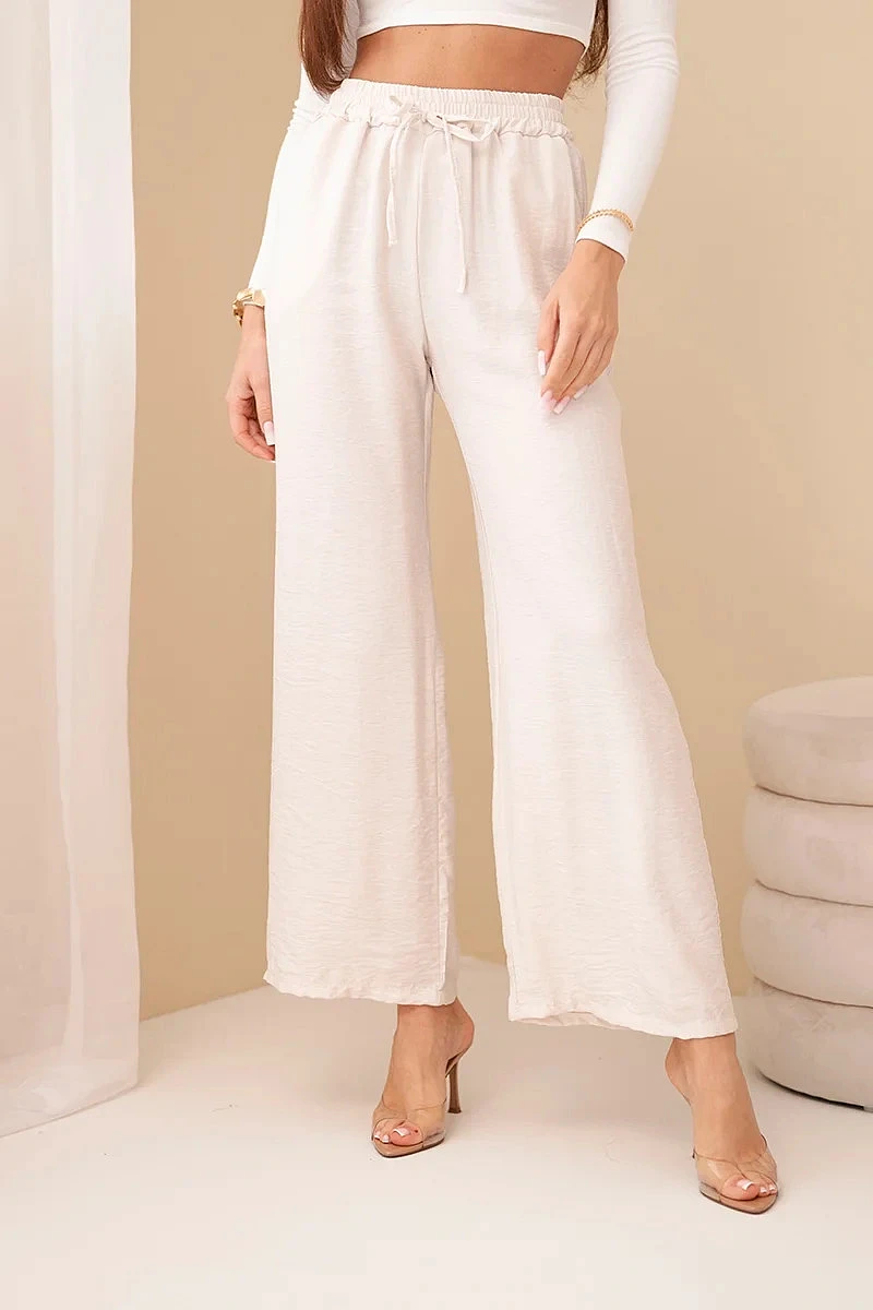 Kalhoty z viskózy se širokými nohavicemi béžové