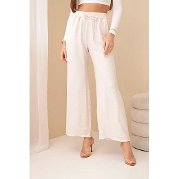 Široké viskózové kalhoty jsou jedinečným kouskem oblečení, který kombinuje pohodlí a eleganci. Tyto kalhoty vyrobené z lehkého a vzdušného viskózového materiálu zaručují nejen svobodu pohybu, ale také vám udrží pocit lehkosti a svěžesti po celý den. Široká nohavice dodává kalhotám charakteristický, volný střih, který je módní i pohodlný. Díky tomuto prvku vypadají kalhoty mimořádně stylově a působivě a dodává originalitu každému stylu. Univerzální design širokých kalhot je předurčuje pro různé příležitosti a styly. Můžete je nosit jak ke každodennímu ležérnímu outfitu, tak k elegantnějším soupravám na pracovní schůzky nebo večerní výlety. Široké viskózové kalhoty jsou perfektní volbou pro ženy, které oceňují pohodlí a styl. Díky univerzálnímu designu a kvalitnímu zpracování jsou tyto kalhoty nenahraditelným kouskem šatníku, který skvěle doplní každou kolekci oblečení. Velikost je univerzální a bude vhodná pro ženy, které nosí velikost S, M nebo L.