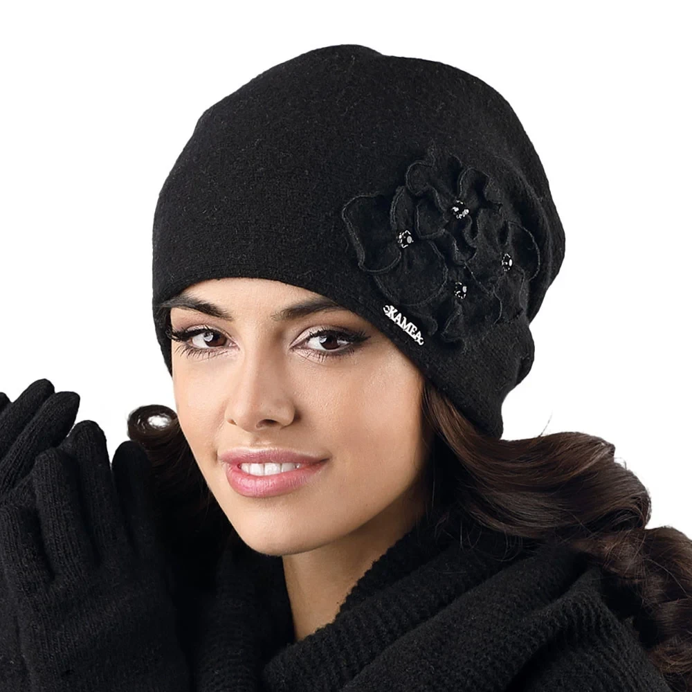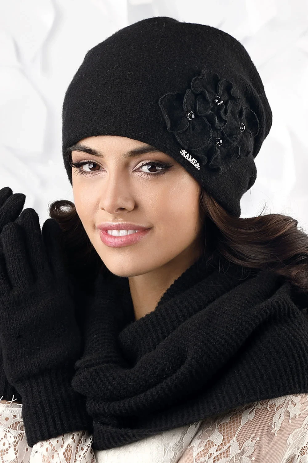 Pokrývky hlavy od společnosti Kamea. Andorra model. Výrobek je vyroben z 80 % z vlny a 20 % z polyamidu. Vlastnosti produktu: elegantní s květinami vlněné. Výrobek pro ženy.