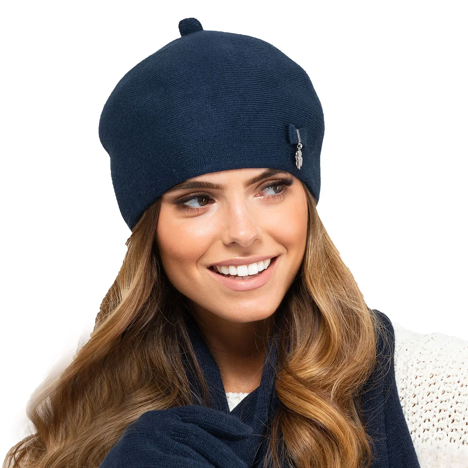 Pokrývky hlavy od společnosti Kamea. Model Murcia. Výrobek je vyroben ze 40 % z akrylu, 25 % z viskózy, 20 % z vlny a 15 % z elastanu. Výrobek pro ženy.