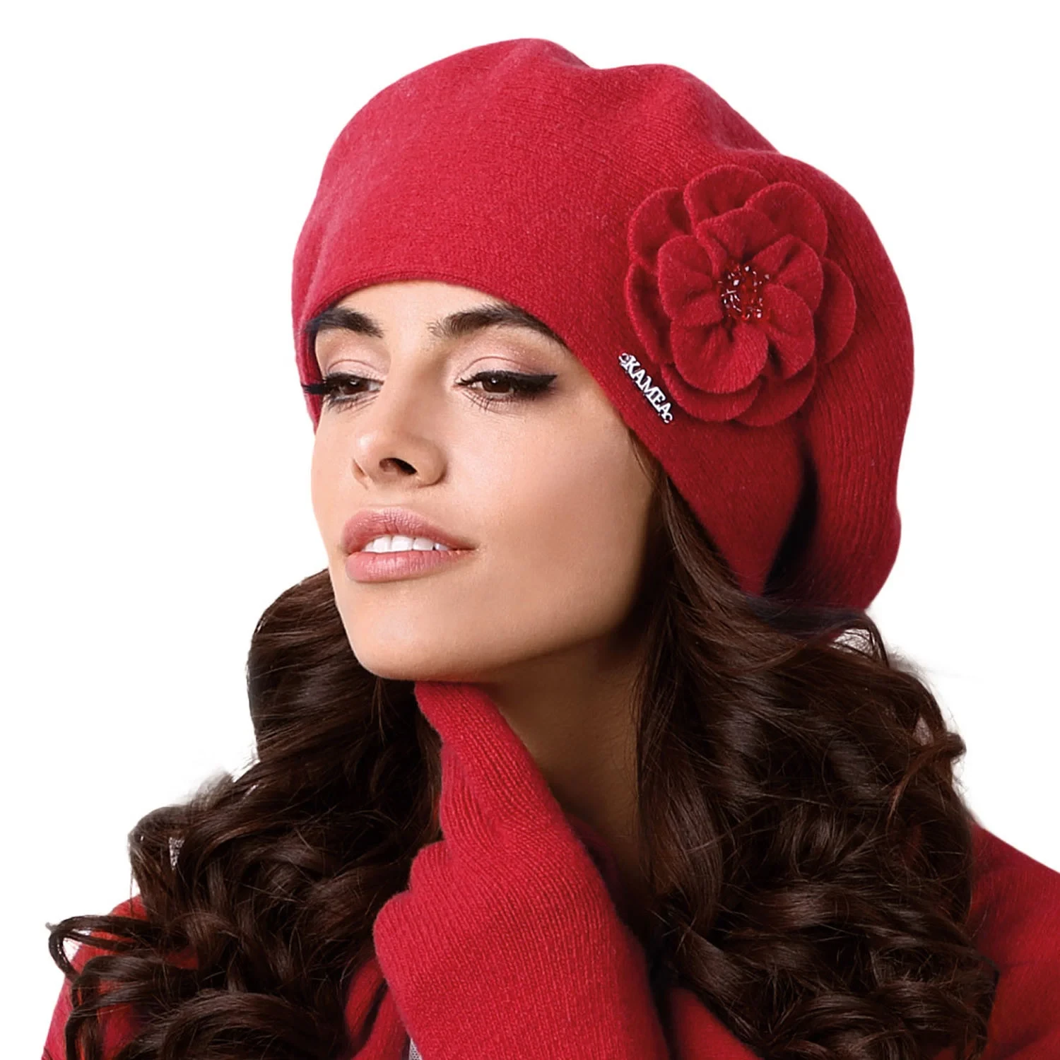 Pokrývky hlavy od společnosti Kamea. Model Vicenza. Výrobek je vyroben z 80 % z vlny a 20 % z elastanu. Výhody produktu: elegantní vlněné s květinou. Výrobek pro ženy.Parametry