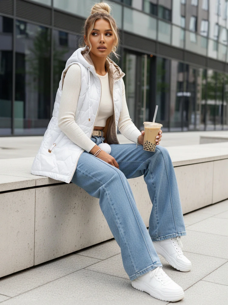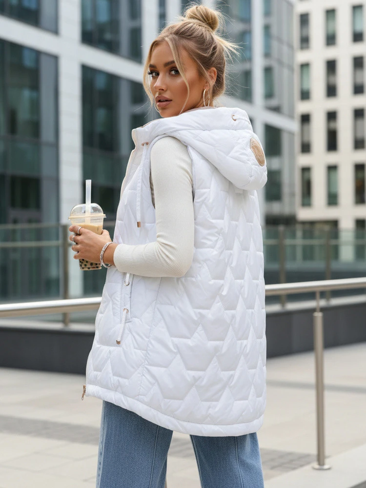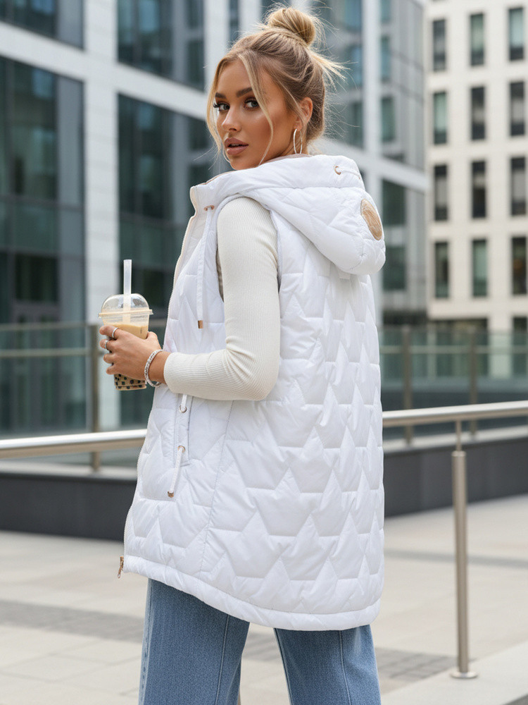 Kamizelka damska pikowana z kapturem biała model 22038482 - FashionStreet
