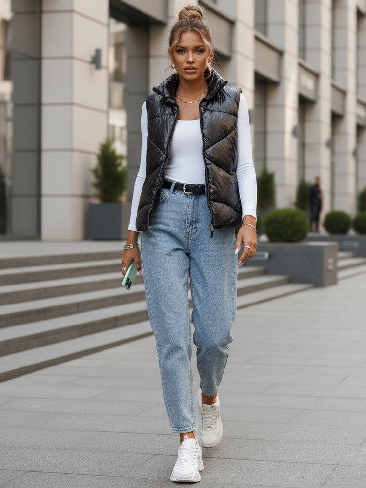 Kamizelka damska pikowana ze stójką czarna FashionStreet TY3477