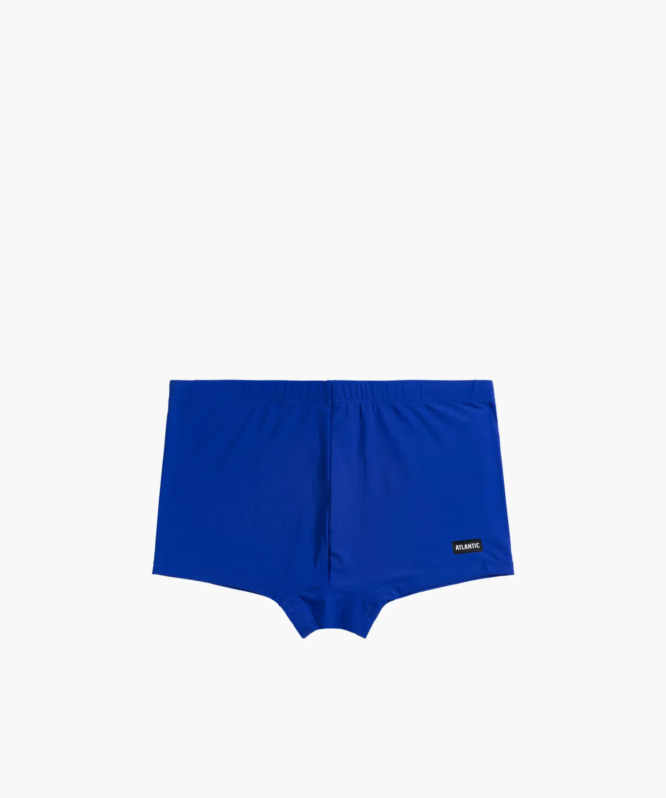 Poznaj miękkie i elastyczne kąpielówki szorty. Kąpielówki zwracają uwagę kolorystyką - niebieski ma tutaj mocny, intensywny odcień. Mają sportowy charakter - uniwersalnej długości nogawki ozdobione logo Atlantic oraz średniej wysokości stan zaznaczony wewnętrznym sznurkiem do regulacji. Wewnątrz szortów znajduje się podszewka. Kąpielówki wykonane są z przyjemnej dzianiny będącej kombinacją szybkoschnącego poliamidu i rozciągliwego elastanu. Wytrzymały i odporny na działanie słońca a także chloru materiał z biegiem czasu nie traci swoich właściwości.