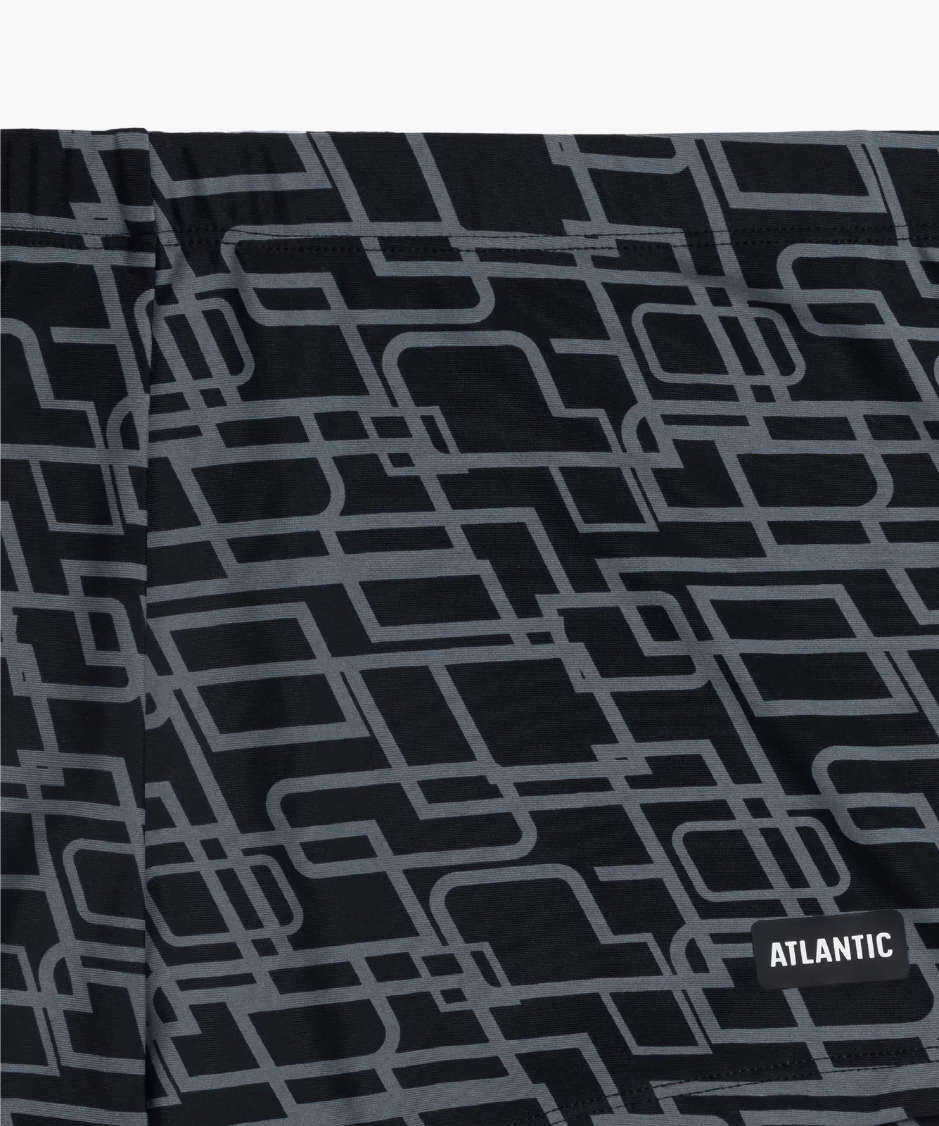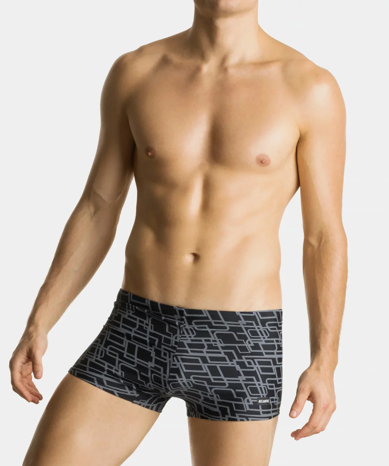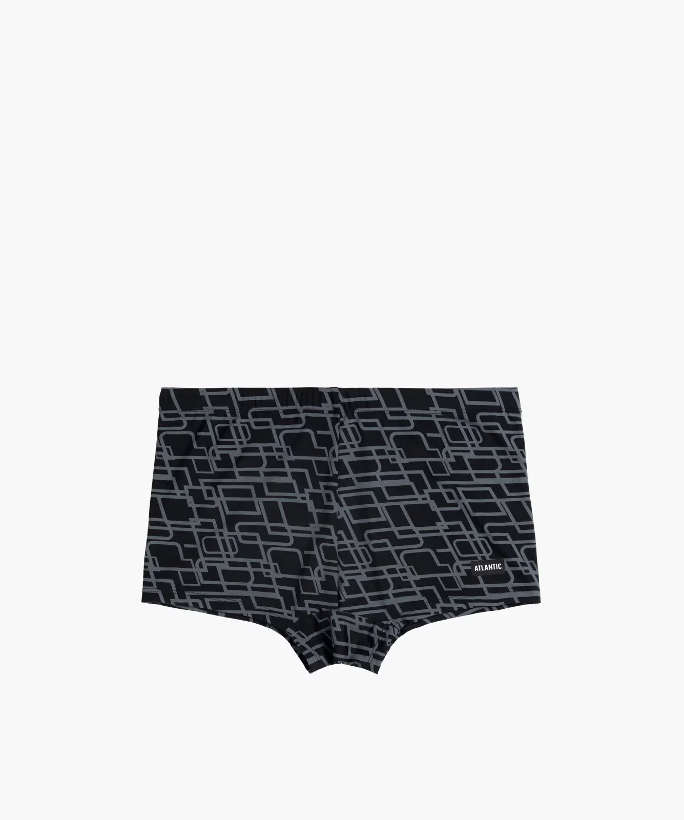 Te szorty kąpielowe cię zachwycą. Po pierwsze, są tak miękkie i elastyczne, że zapewnią ci nieskrępowane ruchy i maksymalny komfort. Po drugie, uwagę zwraca w nich kolor i wzór - na gładkiej czarnej powierzchni znajduje się geometryczny wzór w szarym kolorze. Po trzecie, szorty mają sportowy charakter - uniwersalnej długości nogawki i średniej wysokości talię z wewnętrznym sznurkiem do regulacji. Mają też praktyczną wewnętrzną podszewkę. Szorty wykonane są z szybkoschnącego poliamidu oraz rozciągliwego elastanu. Wytrzymały i odporny na działanie słońca a także chloru materiał z czasem nie traci swoich właściwości.