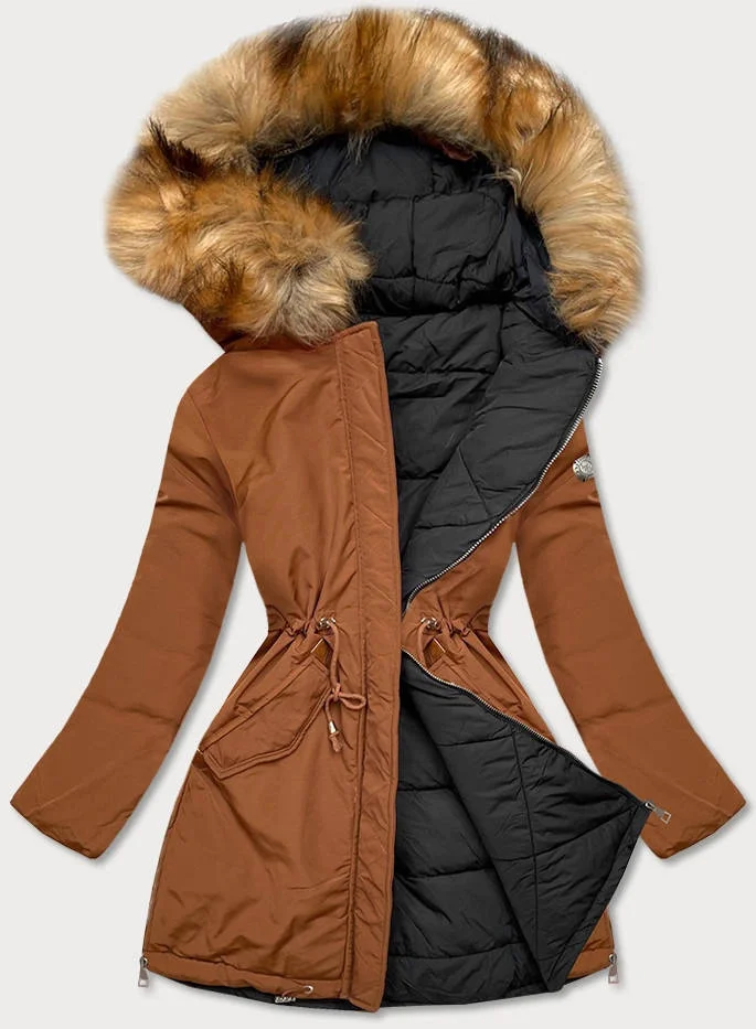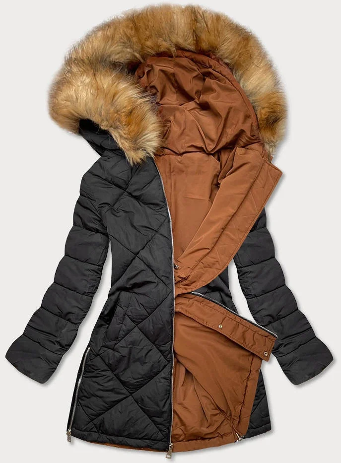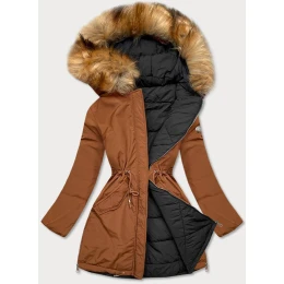 Karamelovo-černá oboustranná dámská zimní bunda (m-210a5)