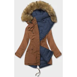 Karamelovo-tmavě modrá oboustranná dámská zimní bunda (2M-21508)