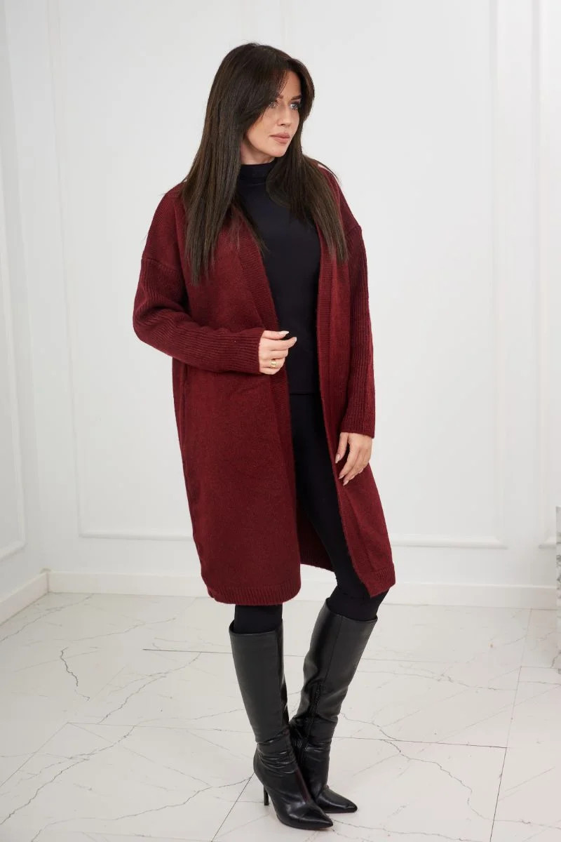 Svetr dlouhý kardigan Burgundsko