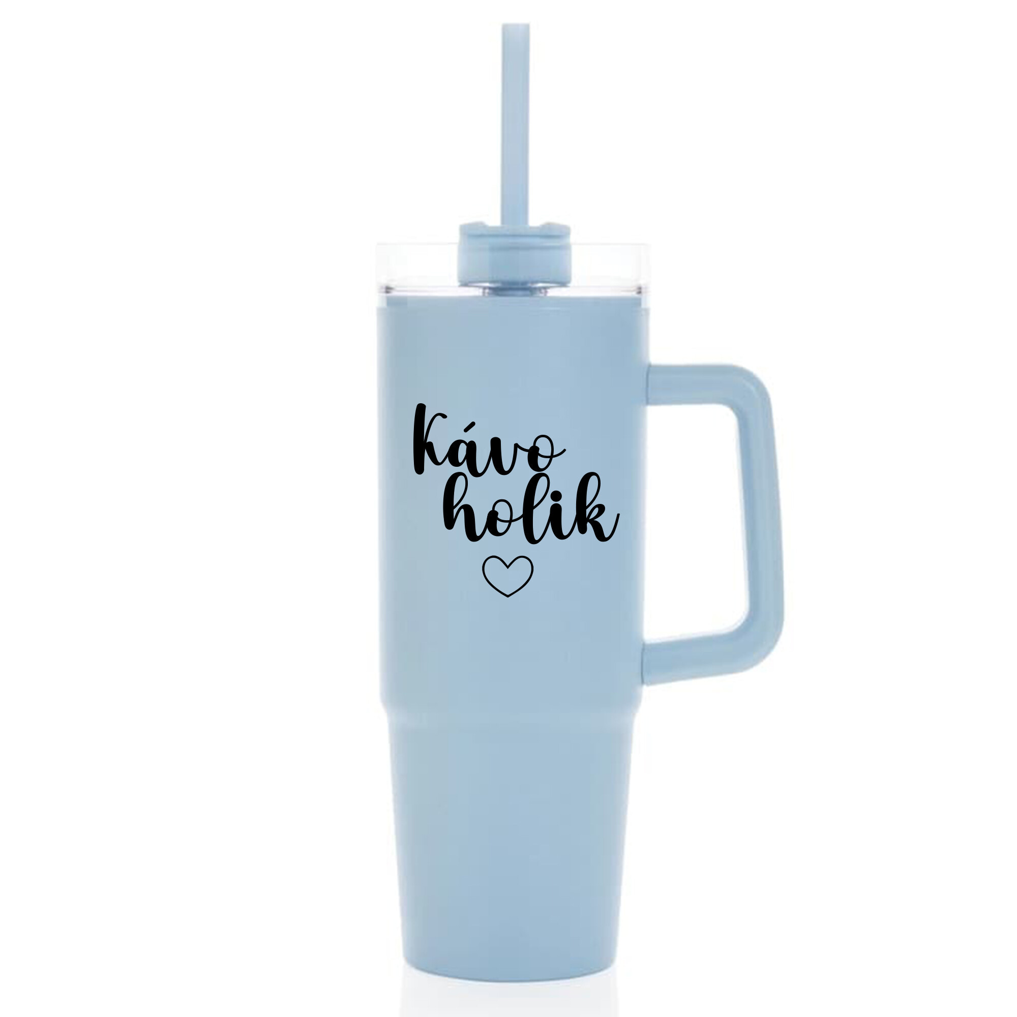 KÁVOHOLIK - světle modrý cestovní termohrnek s průhledným víčkem 900 ml