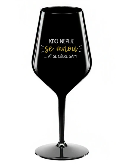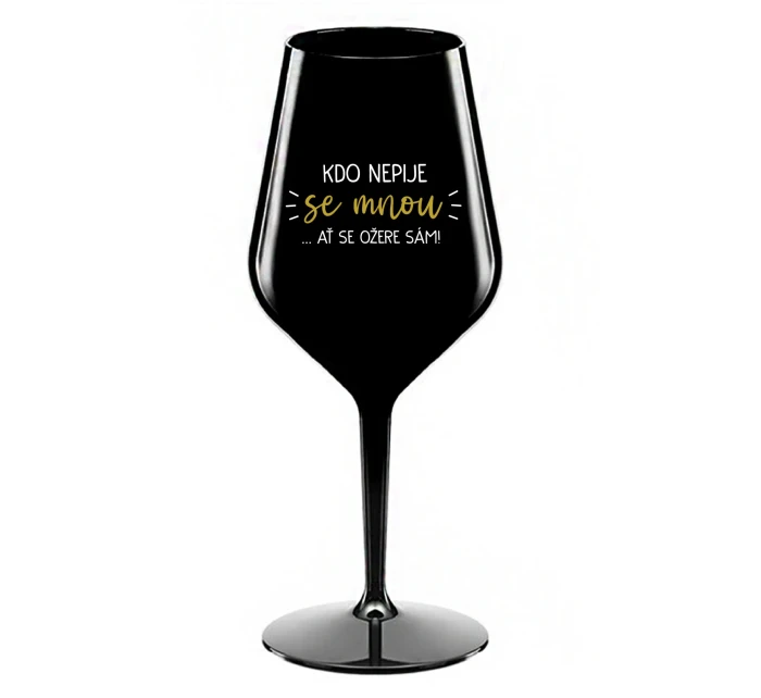KDO NEPIJE SE MNOU...AŤ SE OŽERE SÁM! - černá nerozbitná sklenice na víno 470 ml