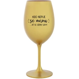 Vinná zlatá sklenice s originálním motivem KDO NEPIJE SE MNOU...AŤ SE OŽERE SÁM! je krásným a osobitým dárkem, které ale využijete i Vy sami třeba ve chvílích, kdy si budete chtít zpříjemnit náročný den. Tyto originální vinné sklenice jsou totiž nejen pro výjimečné události, ale i pro běžné večery, které si chcete zpříjemnit sklenkou dobrého vína. Jistě proto potěší každého milovníka vína, i toho, kdo si umí svůj život vychutnat plnými doušky.