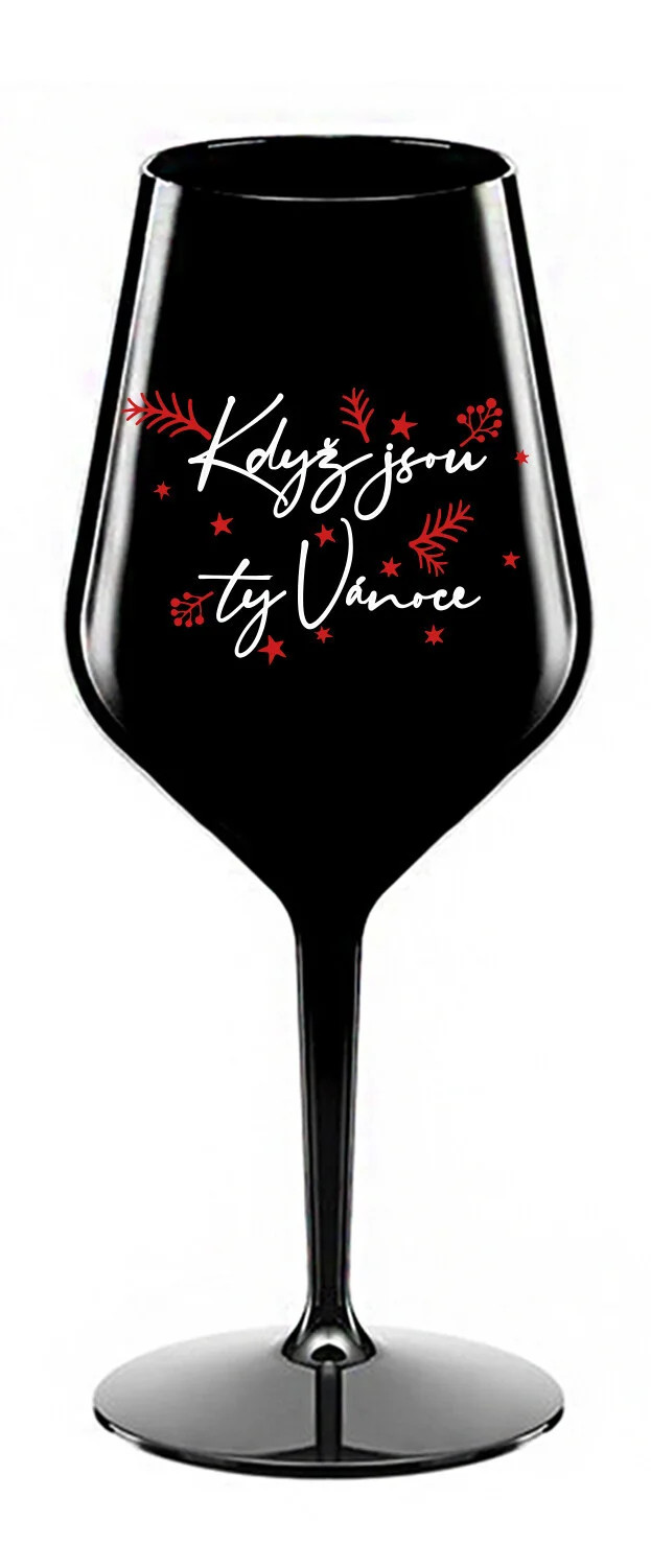 KDYŽ JSOU TY VÁNOCE - černá nerozbitná sklenice na víno 470 ml